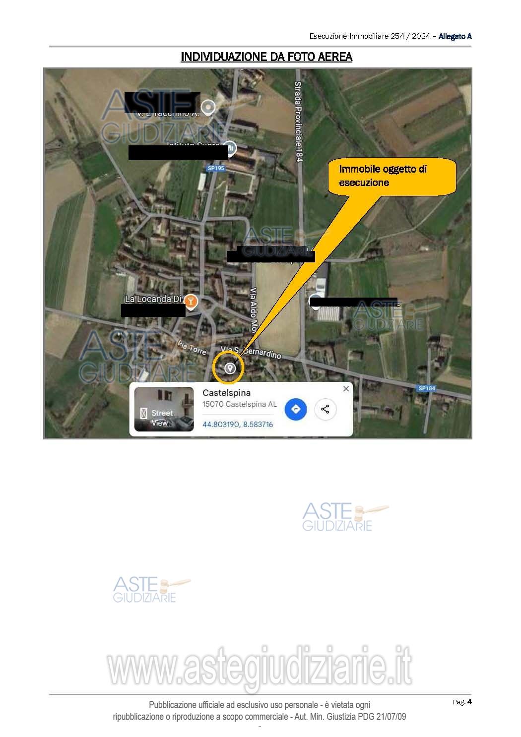 Vendita all'asta Senza incanto - LOTTO UNICO: Immobile ad uso residenziale con ingresso al compendio attraverso il cortile interno esclusivo con piccolo corpo di fabbrica collocato all’intero della proprietà sviluppato su due piani fuori terra, adibito a magazzino/deposito. Prezzo base € 13.781,25 (offerta minima € 10.335,94). Data vendita 19/05/2026 ore 09:00. Professionista delegato alla vendita Avv. Avv. Ilaria Gioitta - Email "info@avvocatiferrari.com"; Tel. 0131251686. Custode Giudiziario Avv. Avv. Ilaria Gioitta - Email "info@avvocatiferrari.com"; Tel. 0131251686. Rif. Tribunale di Alessandria - Espropriazione immobiliare (cartabia) n. 254/2024