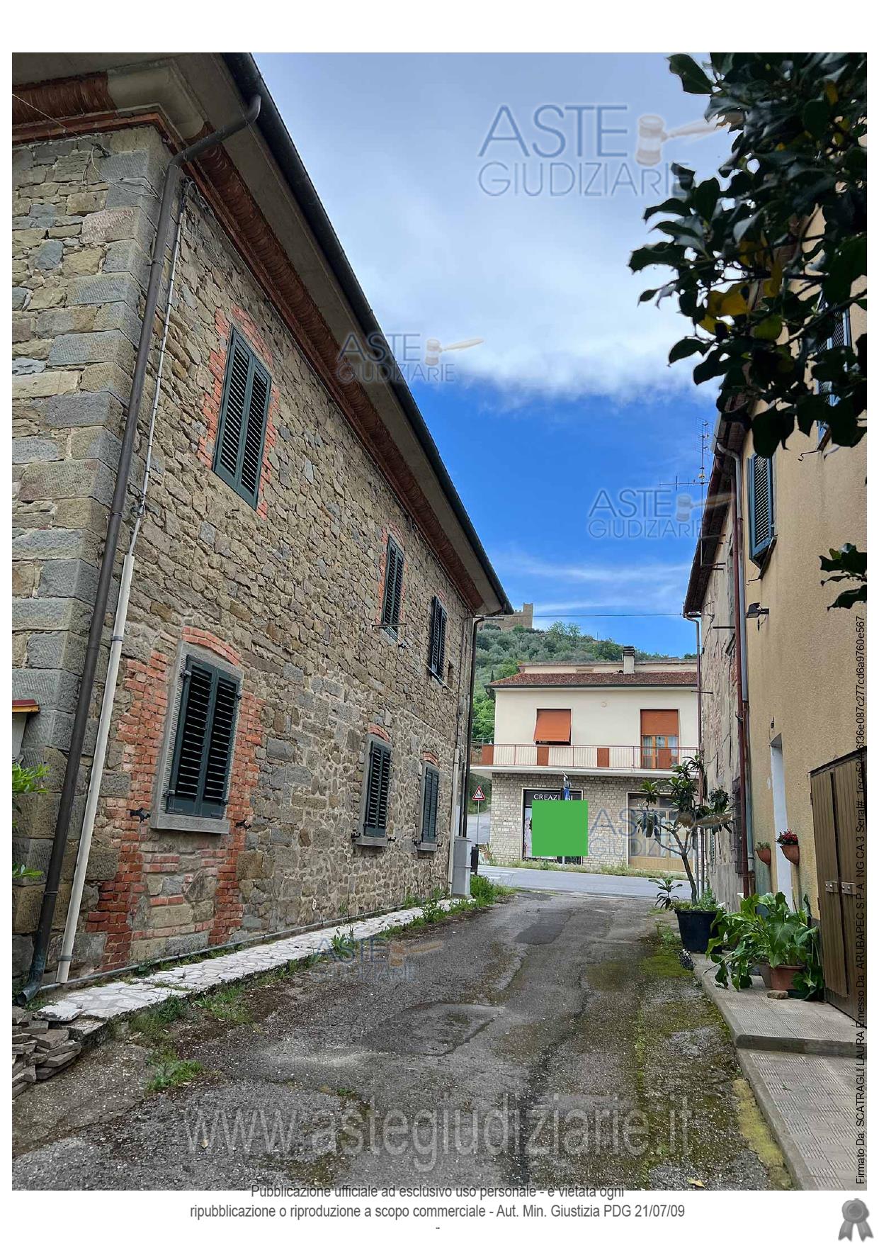 Vendita all'asta Senza incanto, con gara telematica sincrona mista - LOTTO UNICO: Diritto di piena proprietà per l’intero su di un fabbricato ad uso residenziale ubicato nel Comune di Castiglion Fiorentino (AR), Loc. Montecchio n°32, costituto da due unità abitative, corredato da superficie di resede a comune per quote indivise ai due subalterni. Prezzo base € 136.800,00 (offerta minima € 102.600,00). Data vendita 23/04/2026 ore 09:00. Professionista delegato alla vendita Dott. Carlo Cardini - Email "CARDINI@CARTLEGAL.IT"; Tel. 0575371212. Custode Giudiziario Avv. Istituto Vendite Giudiziarie Arezzo-Siena - Email "VISITE.IVG@GMAIL.COM"; Cell. 3397337017; Tel. 0577318111. Rif. Tribunale di Arezzo - Espropriazione immobiliare (cartabia) n. 37/2024