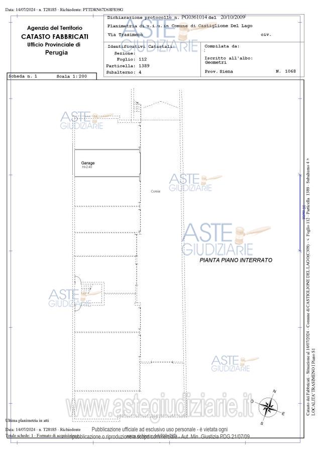 LOTTO 1: Полная собственность на квартиру на первом этаже, зарегистрированную в налоговой карточке под номером 112, участок 1389, подномер 13, а также участки 1393 и 1394 зачеркнуты, расположение Тразимено, этаж Т, категория А/2, класс 4, 3,5 комнат, общая кадастровая площадь 74 м², кадастровая стоимость 271,14 евро, и гараж на полусутерене, зарегистрированный в налоговой карточке под номером 112, участок 1389, подномер 4, Тразимено I, этаж S1, категория С/6, класс 6, площадь 29 м², общая кадастровая площадь 33 м², кадастровая стоимость 50,92 евро. Ultimo prezzo base € 45.562,50 (offerta minima € 34.171,88). Объявление аукциона по данной продаже будет вскоре опубликовано. Giudice Dott. Edmondo Cacace. Custode Giudiziario Aste Giudiziarie Inlinea Spa - Email "vendite@astegiudiziarie.it"; Tel. 0586 201480. Curatore Avv. Manuela Avino - Email "ma.avino@tiscali.it"; Tel. 0815603189. Rif. Tribunale di Napoli - Liquidazione giudiziale(cci) n. 23/2024