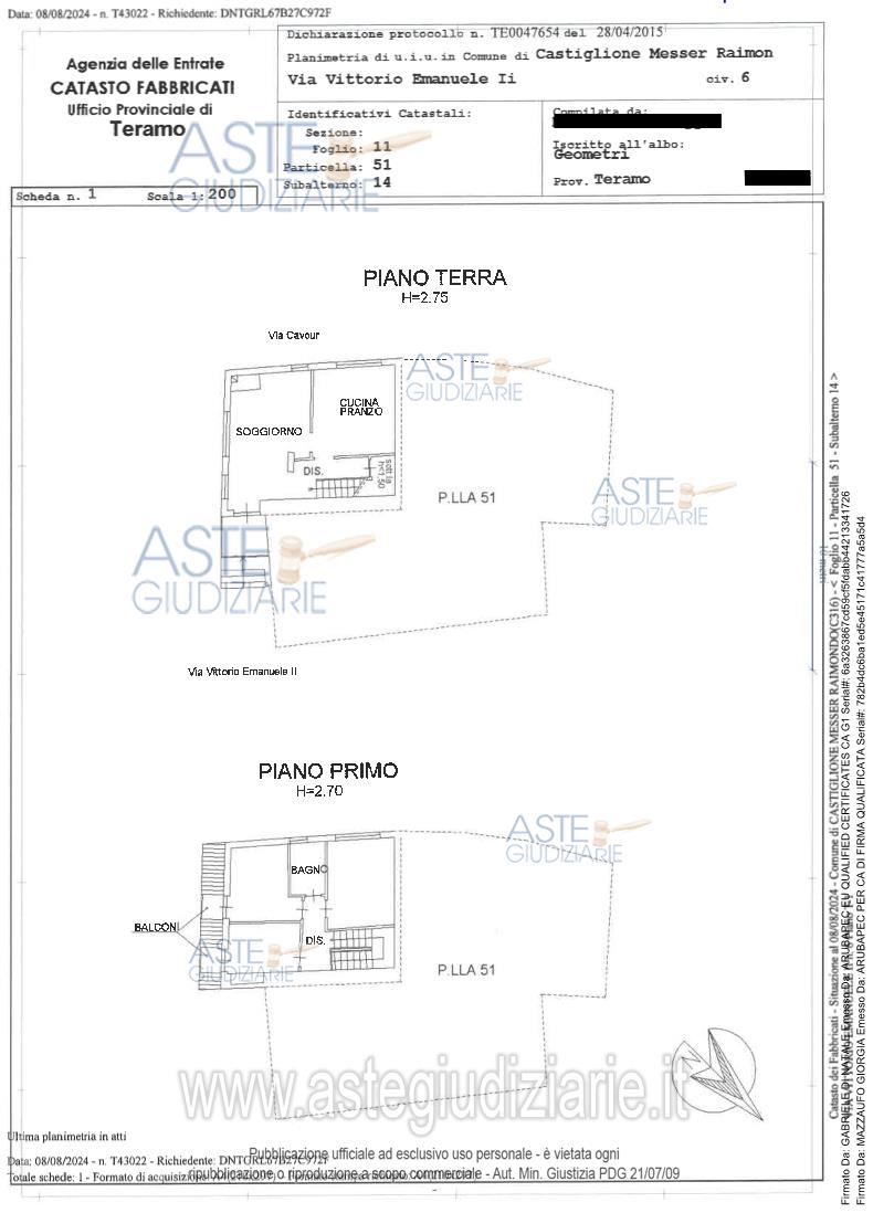 Vendita all'asta Senza incanto, con gara telematica asincrona - LOTTO 1: Diritti pari a 2/9 della piena proprietà di un appartamento di circa 120 mq. e di un magazzino di circa 20 mq., siti in Castiglione Messer Raimondo (TE), alla Via Vittorio Emanuele II. Prezzo base € 7.000,00 (offerta minima € 7.000,00). Data inizio operazioni di vendita: 06/05/2026 ore 16:00. Giudice Flavio Conciatori. Curatore Avv. Caterina Crescenzo - Email "caterina.crescenzo@gmail.com"; Cell. 3485840594; Tel. 0861416166. Rif. Tribunale di Teramo - Fallimentare n. 3/2003