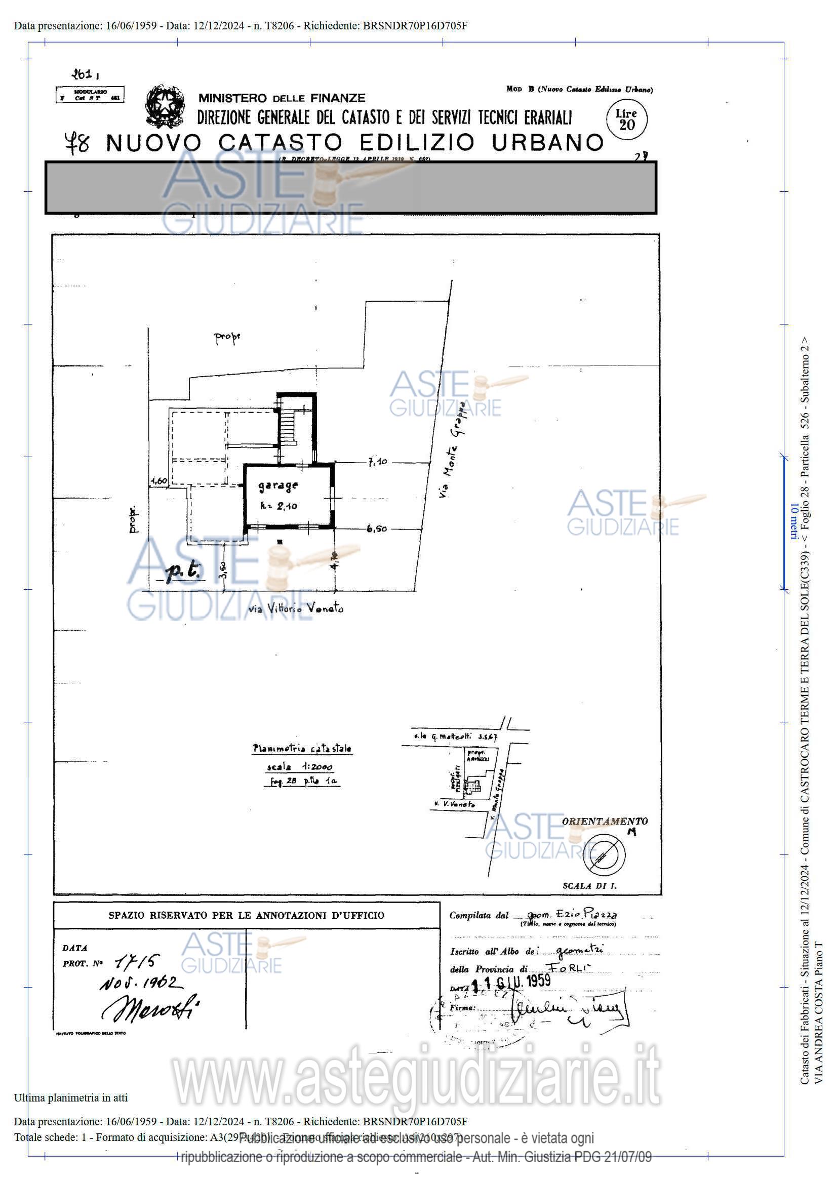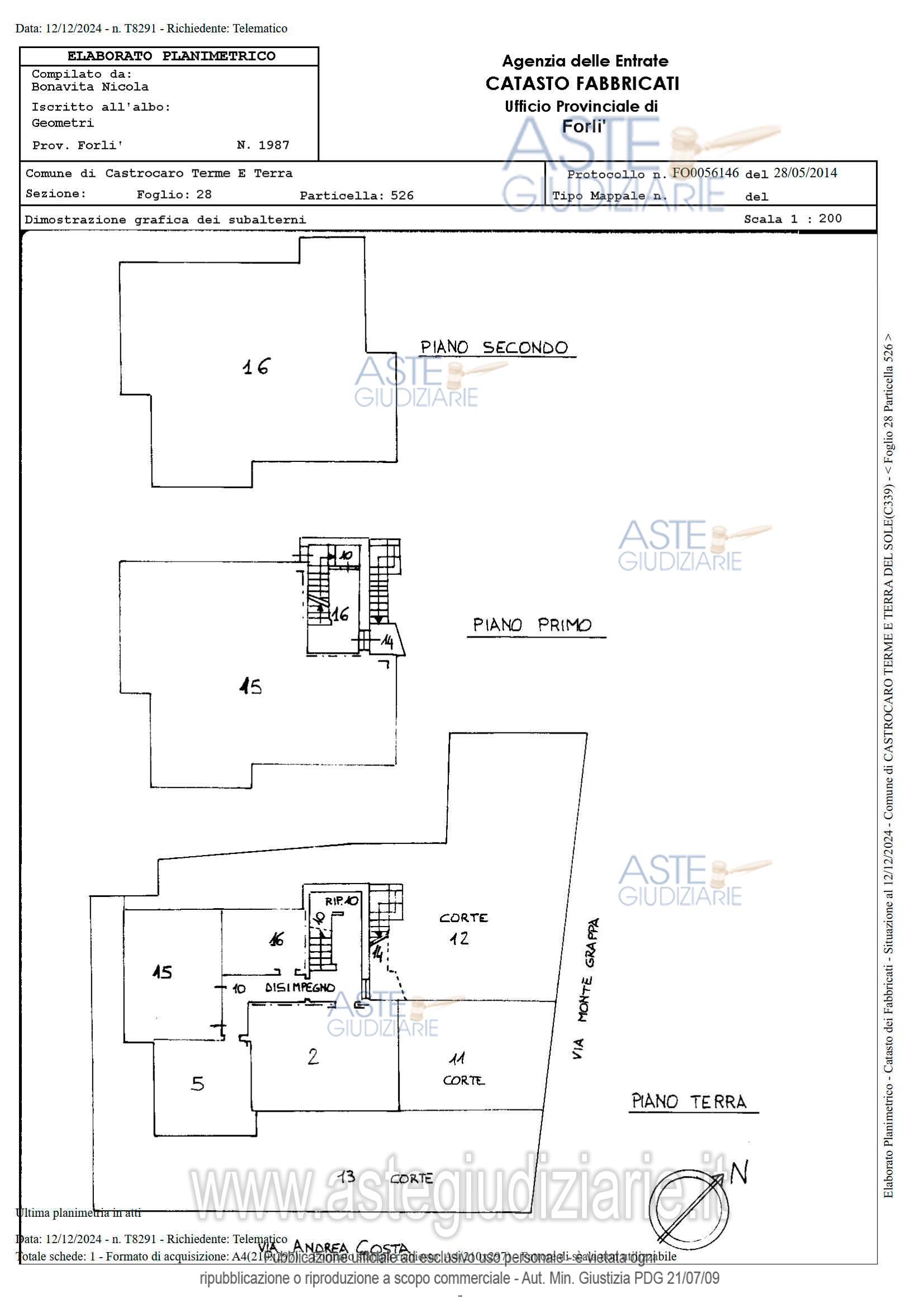 Vendita all'asta Senza incanto, con gara telematica asincrona - LOTTO UNICO: 1/1 di porzioni di fabbricato costituite da appartamento e pertinenziali cantina e garage al piano terra, oltre a corte esclusiva. L'appartamento, con ingresso al I piano, attraverso scala interna, si sviluppa al II piano in soggiorno-pranzo, studio, disimpegno, cucina, 2 camere da letto, bagno e 3 balconi. Comproprietà delle parti comuni come per legge. Superficie commerc. tot. mq. 122,90. Stato di conservazione normale-mediocre. Stato occupazionale: nella disponibilità del Custode IVG Forlì. Prezzo base € 90.000,00 (offerta minima € 67.500,00). Data inizio operazioni di vendita: 26/05/2026 ore 11:30. Giudice Dott. Fabio Santoro. Professionista delegato alla vendita Not. Roberto Scotto Di Clemente - Email "esecuzioninotai@gmail.com"; Tel. 054320059. Custode Giudiziario Ivg Forli’ Srl - Email "ivg.forli@gmail.com"; Tel. 0543473480. Rif. Tribunale di Forlì - Espropriazione immobiliare (cartabia) n. 16/2024