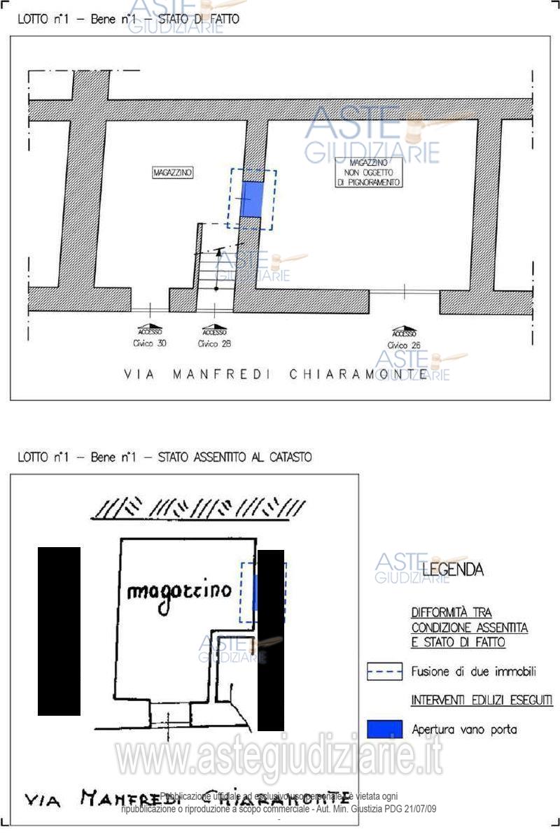 Vendita all'asta Senza incanto, con gara telematica sincrona - LOTTO UNICO: Il lotto è formato:BENE 1: Proprietà magazzino sito in Castronovo, via Manfredi n. 30, P.Terra, al Fg. MU, P.lla217, sub , C/2, 4°cl.BENE 2: Proprietà appartamento sito in Castronovo, via Manfredi n. 28, Fg. MU, P.lla 218 sub.3, A/4, 4° cl., 5,5 vani, 132 mq.Discrepanze catastali presenti e indicate nella CTUDisponibilità LIBERO. Prezzo base € 15.918,84 (offerta minima € 11.939,13). Data vendita 10/12/2025 ore 10:00. Professionista delegato alla vendita Avv. Irene Minutella - Email "iminutella@tortoricilex.it"; Cell. 3289435087. Custode Giudiziario Avv. Irene Minutella - Email "iminutella@tortoricilex.it"; Cell. 3289435087. Rif. Tribunale di Termini Imerese - Esecuzione immobiliare post legge 80 n. 38/2023