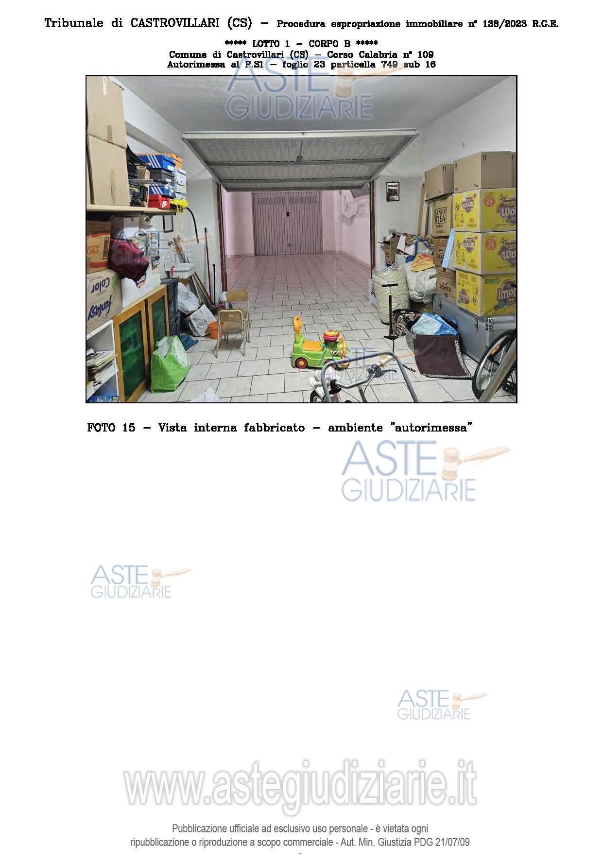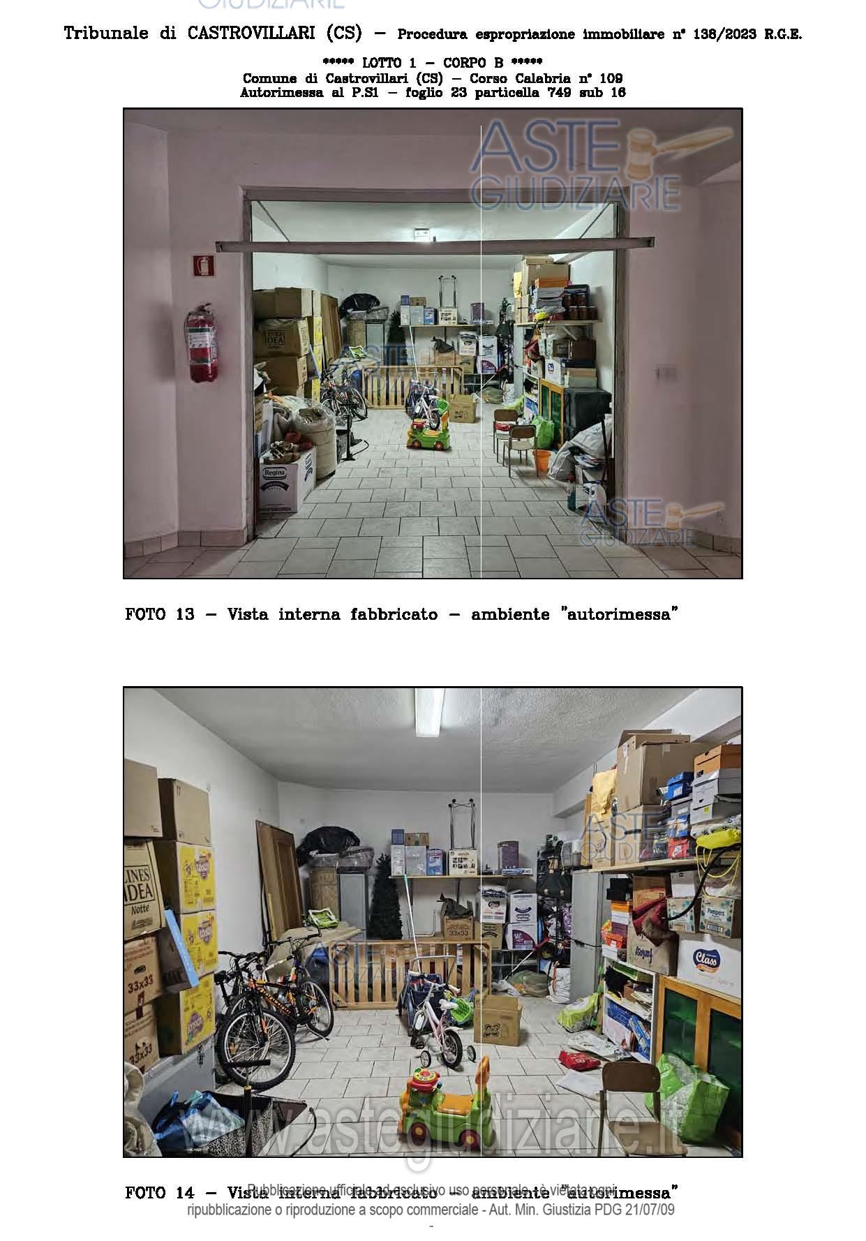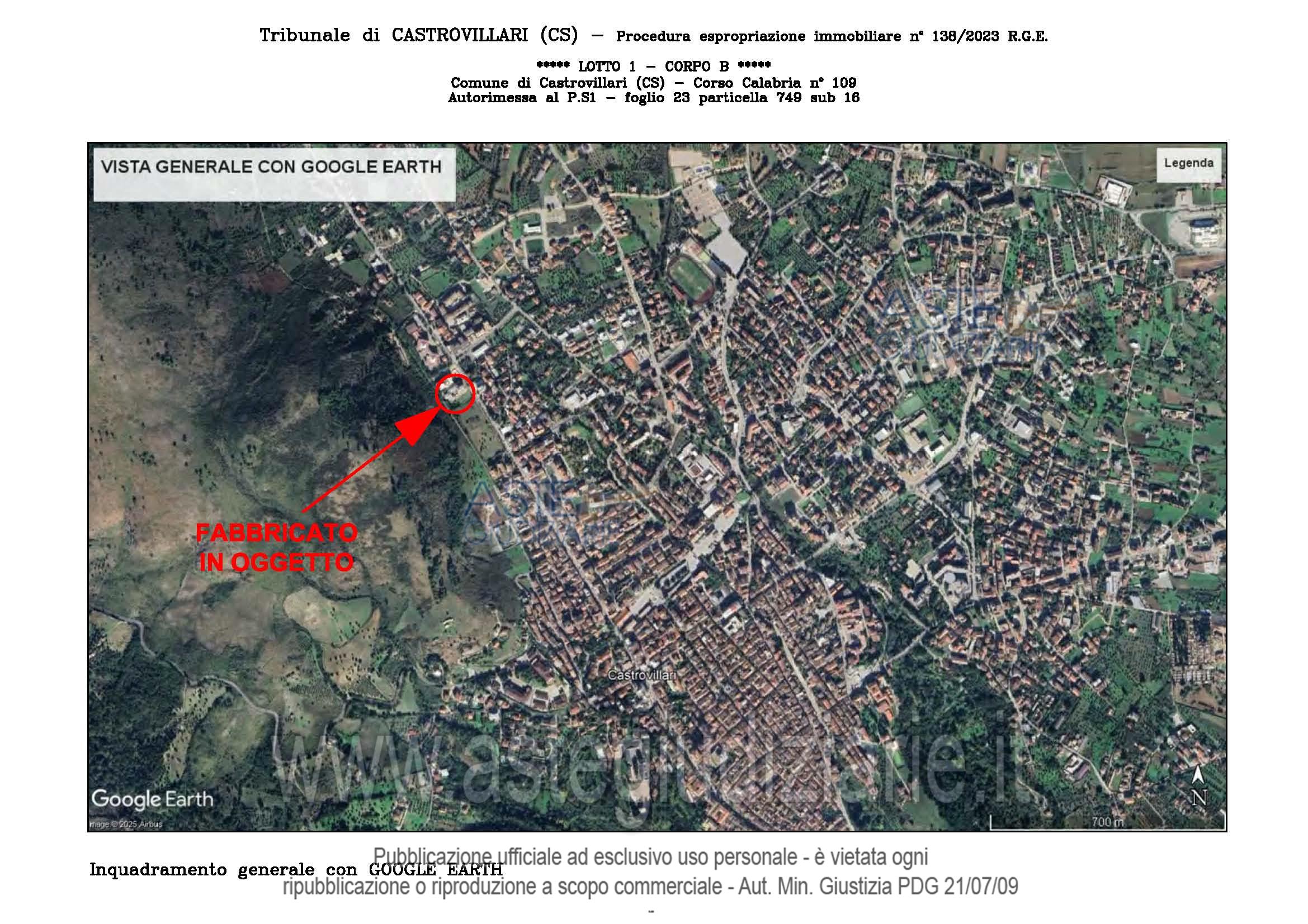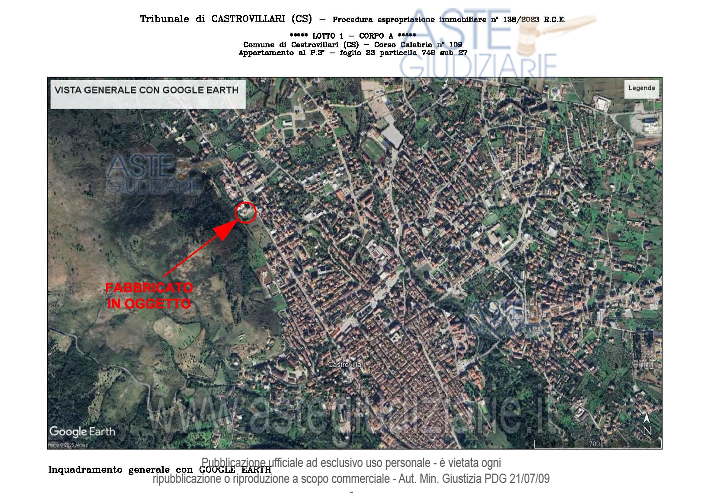 Vendita all'asta Senza incanto, con gara telematica sincrona - LOTTO UNICO: A: piena proprietà 1/1 dell’APPARTAMENTO MANSARDATO B: piena proprietà 1/1 dell’AUTORIMESSA in box singolo ubicata al P.S1 (interrato) del fabbricato “A”. Prezzo base € 48.499,32 (offerta minima € 36.374,49). Data vendita 03/02/2026 ore 16:00. Giudice Giuliana Gaudiano. Professionista delegato alla vendita Dott. Giuseppe Gammaro - Email "studiogammaro@gmail.com". Custode Giudiziario Dott. Giuseppe Gammaro - Email "studiogammaro@gmail.com"; Tel. 3298913665. Rif. Tribunale di Castrovillari - Espropriazione immobiliare (cartabia) n. 138/2023
