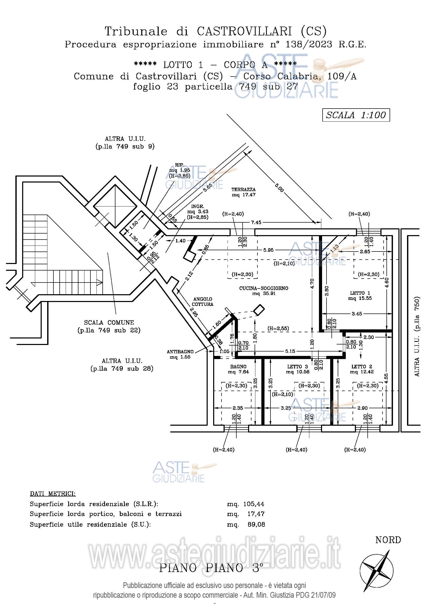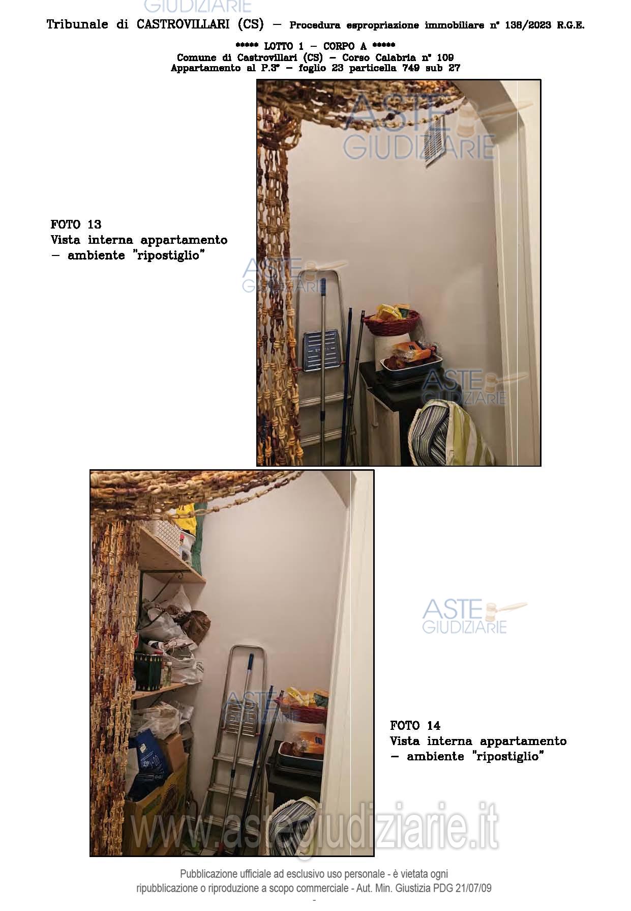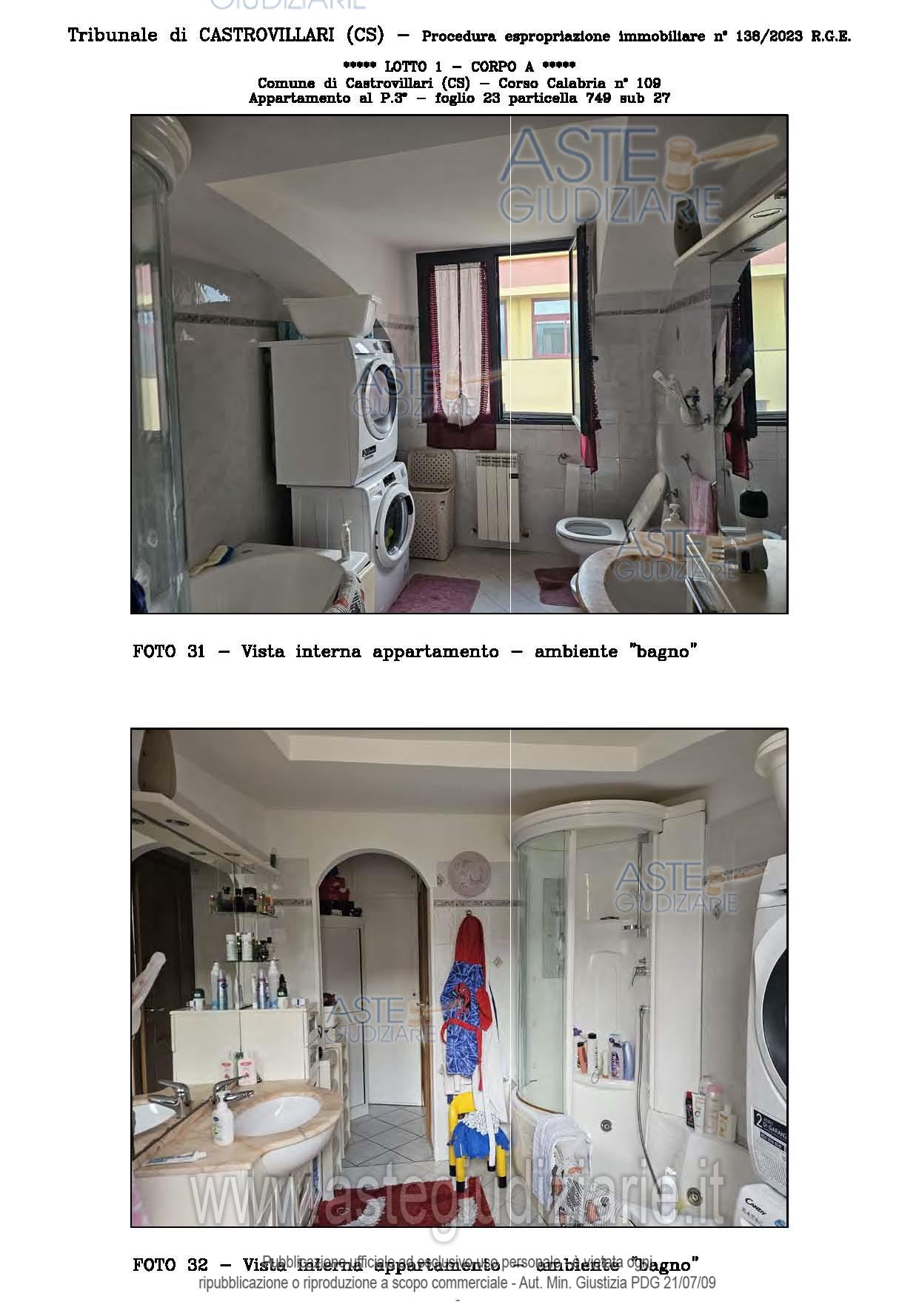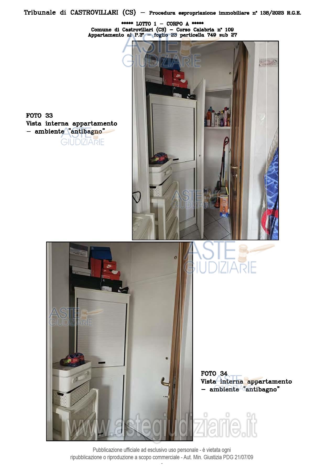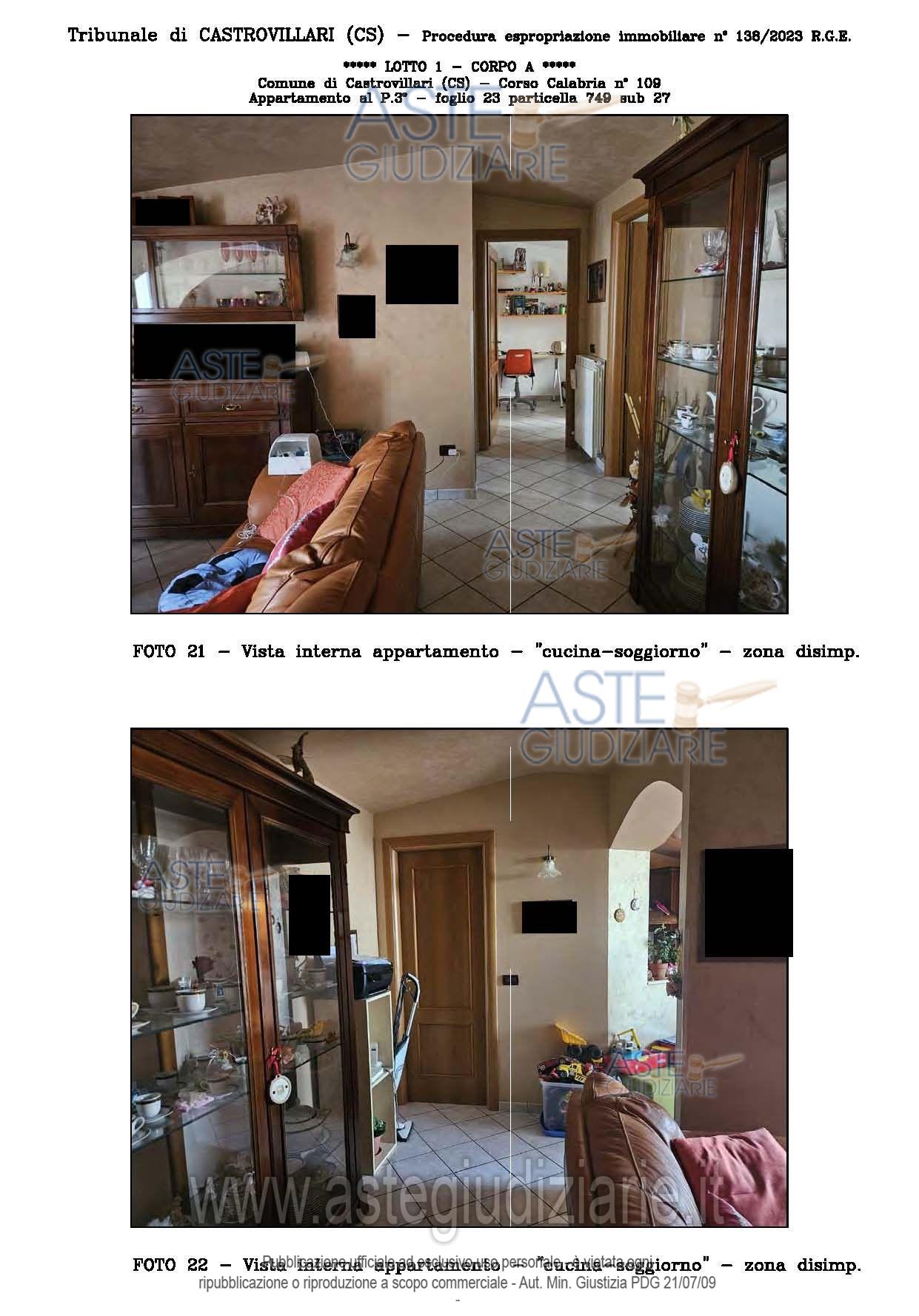 Vendita all'asta Senza incanto, con gara telematica sincrona - LOTTO UNICO: A: piena proprietà 1/1 dell’APPARTAMENTO MANSARDATO B: piena proprietà 1/1 dell’AUTORIMESSA in box singolo ubicata al P.S1 (interrato) del fabbricato “A”. Prezzo base € 48.499,32 (offerta minima € 36.374,49). Data vendita 03/02/2026 ore 16:00. Giudice Giuliana Gaudiano. Professionista delegato alla vendita Dott. Giuseppe Gammaro - Email "studiogammaro@gmail.com". Custode Giudiziario Dott. Giuseppe Gammaro - Email "studiogammaro@gmail.com"; Tel. 3298913665. Rif. Tribunale di Castrovillari - Espropriazione immobiliare (cartabia) n. 138/2023