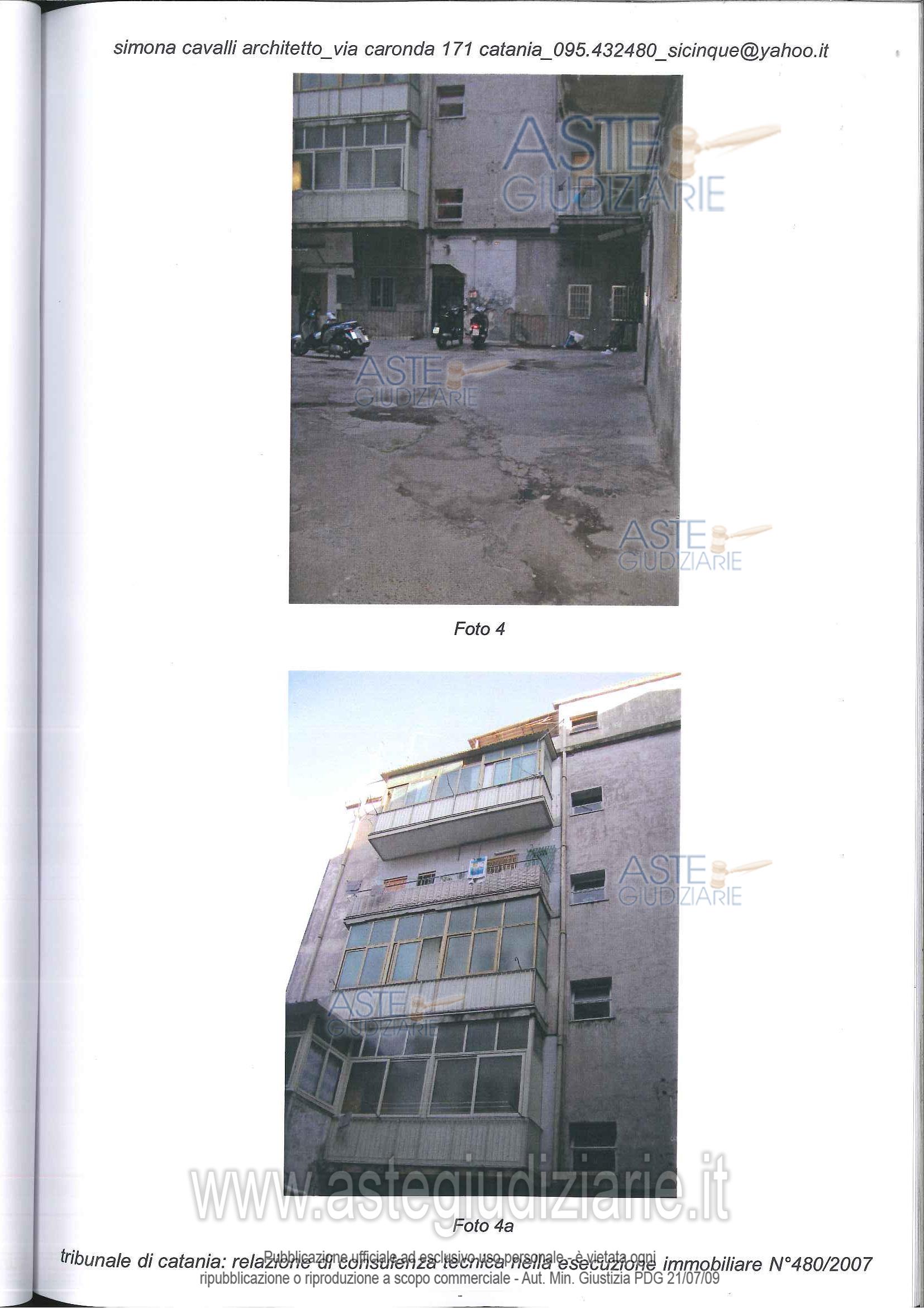 Vendita all'asta Senza incanto - LOTTO UNICO: Immobile sito in Catania, via Fortino Vecchio n. 79, quarto piano scala C, composto da quattro vani più accessori con sovrastante sezione di terrazza . Prezzo base € 60.300,84 (offerta minima € 45.225,63). Data vendita 11/03/2026 ore 17:00. Giudice Nelly Gaia Mangiameli. Professionista delegato alla vendita Avv. Giovanna Magnano S. Lio - Email "giovanna.magnanosanlio@pec.ordineavvocaticatania.it"; Tel. 3453552211. Custode Giudiziario Avv. Giovanna Magnano S. Lio - Email "giovanna.magnanosanlio@pec.ordineavvocaticatania.it"; Tel. 3453552211. Rif. Tribunale di Catania - Esecuzione immobiliare post legge 80 n. 480/2007