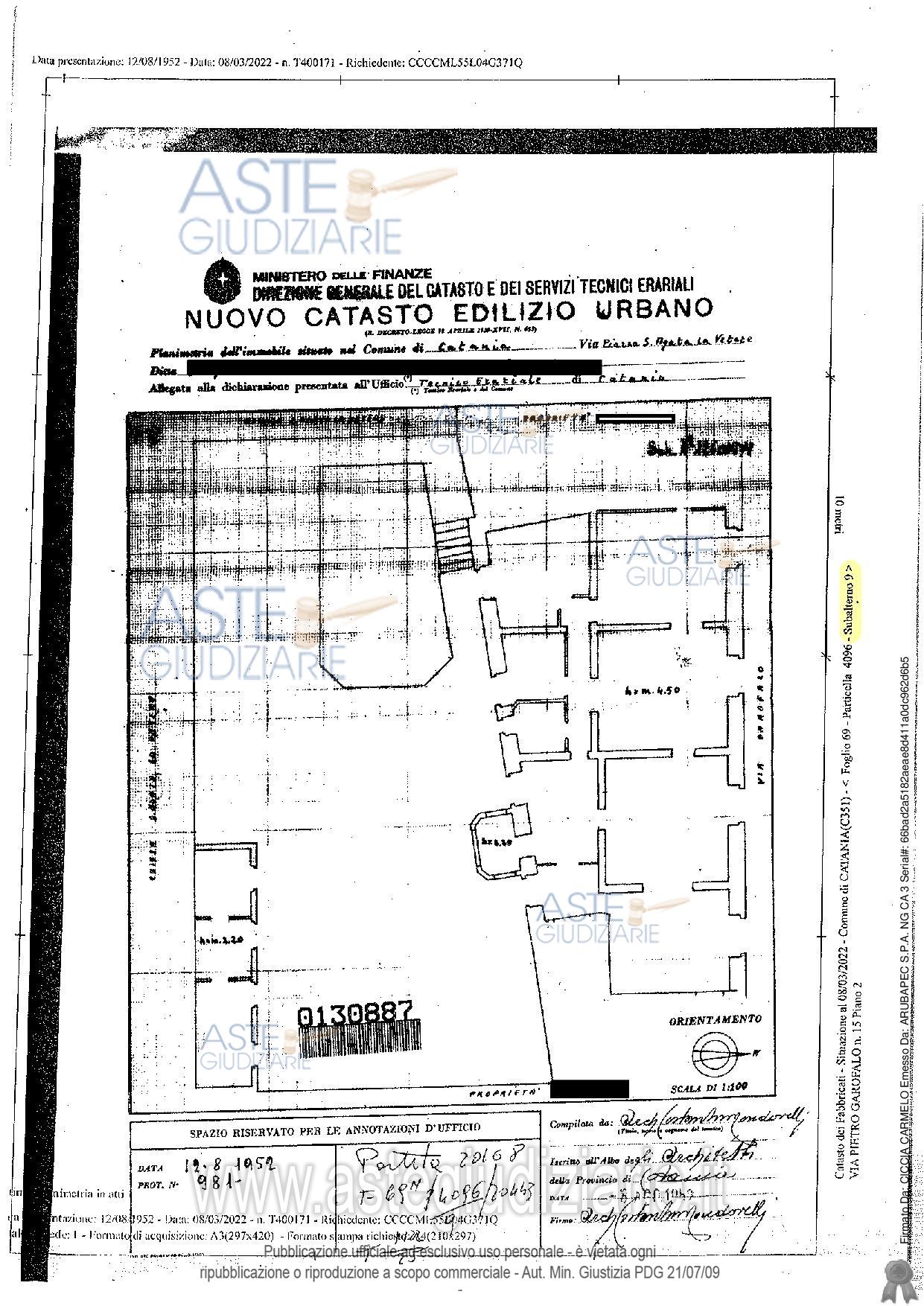 Vendita all'asta Senza incanto, con gara telematica sincrona mista - LOTTO 2: Appartamento in Catania, Via Garofalo n. 15, al Foglio 69, Particella 4096, Sub. 9, Cat. A/2, classe 5, vani 11, r.c. € 1.477,07; oltre locale ufficio con accesso da piazza S. Agata La Vetere n. 4 al Foglio 69, Particella 20462, Sub. 4 (già sub. 2), Cat. A/10, classe 3, vani 3, superficie mq 56, r.c. € 1.564,86; oltre bottega con accesso da piazza S. Agata La Vetere n. 4 al Foglio 69, Particella 20462, Sub. 6 (già sub. 2), Cat. C/1, classe 6, mq 20, superficie mq 26, r.c. € 708,58. Prezzo base € 317.300,00 (offerta minima € 237.975,00). Data vendita 10/12/2025 ore 16:00. Professionista delegato alla vendita Avv. Orazio Torrisi - Email "avv.oraziotorrisi.ct@gmail.com"; Tel. 095416547. Custode Giudiziario Avv. Orazio Torrisi - Email "avv.oraziotorrisi.ct@gmail.com"; Tel. 095416547. Rif. Tribunale di Catania - Esecuzione immobiliare post legge 80 n. 341/2020