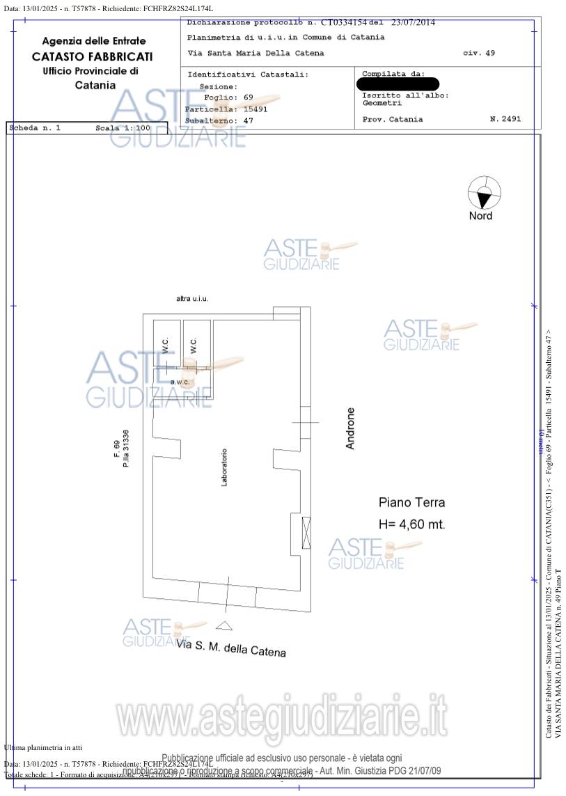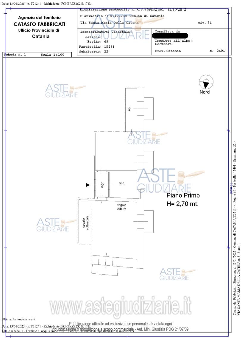 Vendita all'asta Competitiva, con gara telematica sincrona - LOTTO 6: LOTTO SEI: Diritto di piena proprietà sulla seguente unità immobiliare: appartamento sito in Catania posto al primo piano, avente accesso dal civico n. 51 di Via Santa Maria della Catena, composto da tre vani, censito al NCEU al fg. 69, part. 15491 sub. 22, piano 1, z.c.1, cat. A/3, cl. 5, vani 3, R.C. € 278,89;. Prezzo base € 63.000,00 (offerta minima € 47.250,00). Data vendita 18/12/2025 ore 10:00. Giudice Cristiana Delfa. Professionista delegato alla vendita Avv. Gaetano Messina. Custode Giudiziario Avv. Gaetano Messina - Email "g.messina@testaavvocati.it". Rif. Tribunale di Catania - Esecuzione immobiliare post legge 80 n. 618/2021