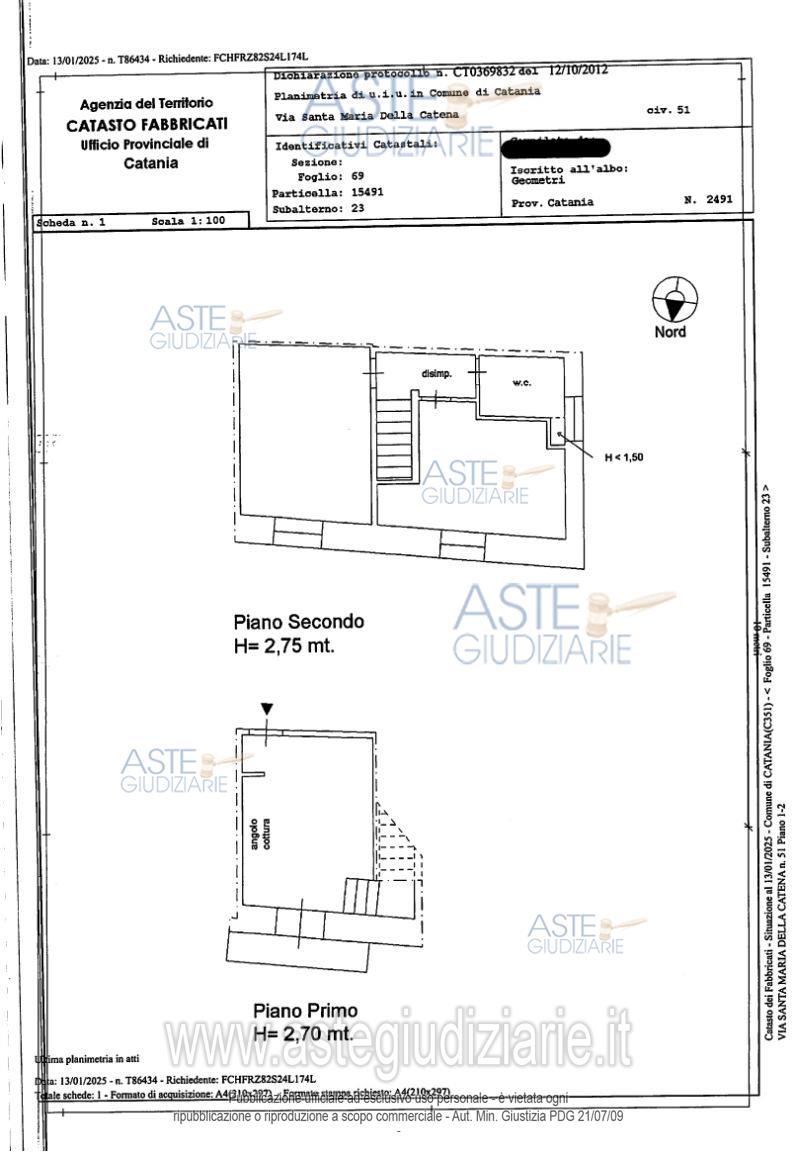 Vendita all'asta Competitiva, con gara telematica sincrona - LOTTO 7: LOTTO SETTE: Diritto di piena proprietà sulla seguente unità immobiliare: unità immobiliare urbana sita in Catania posta al primo e secondo piano, avente accesso dal civico n. 51 di Via Santa Maria della Catena, composta da 3,5 vani, censito al NCEU al fg. 69 part. 15491, sub. 23, piano 1-2, z.c.1, cat. A/3, cl. 5, vani 3,5, RC € 325,37;. Prezzo base € 55.500,00 (offerta minima € 41.625,00). Data vendita 14/04/2026 ore 10:00. Giudice Cristiana Delfa. Professionista delegato alla vendita Avv. Gaetano Messina. Custode Giudiziario Avv. Gaetano Messina - Email "g.messina@testaavvocati.it". Rif. Tribunale di Catania - Esecuzione immobiliare post legge 80 n. 618/2021