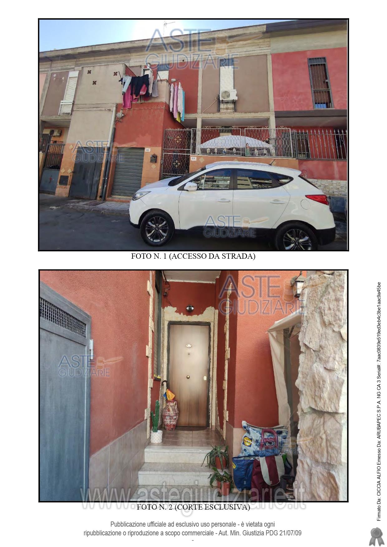 Vendita all'asta Senza incanto, con gara telematica sincrona - LOTTO UNICO: piena proprietà casa a schiera unifamiliare, comune di Catania (CT) in Via-Villaggio Zia Lisa n. 97/Q, posta al piano T-1°, Foglio 36, particella 352, sub. 10. Prezzo base € 82.000,00 (offerta minima € 61.500,00). Data vendita 17/02/2026 ore 11:00. Giudice Cristiana Delfa. Professionista delegato alla vendita Avv. Davis Saitta - Email "avvocatodavis.saitta@gmail.com"; Cell. 3473073797; Tel. 0958814835. Custode Giudiziario Avv. Davis Saitta - Email "avvocatodavis.saitta@gmail.com"; Cell. 3473073797; Tel. 0958814835. Rif. Tribunale di Catania - Esecuzione immobiliare post legge 80 n. 559/2022