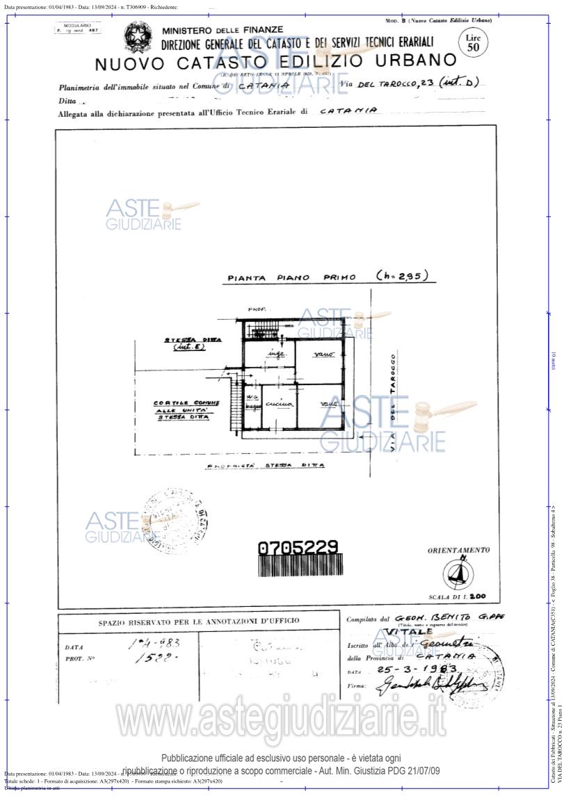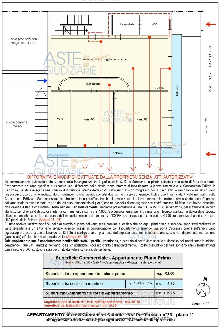 Vendita all'asta Senza incanto, con gara telematica sincrona - LOTTO 1: Lotto 1: piena proprietà di appartamento in Catania, via del Tarocco 23, piano primo, della superficie interna utile di 88 mq circa, di tre vani (vano unico adibito a ingresso/soggiorno/cucina e due vani letto) ed accessori (disimpegno, lavanderia , 2 bagni), balcone mq 19 circa. Prezzo base € 51.750,00 (offerta minima € 38.813,00). Data vendita 12/05/2026 ore 10:00. Professionista delegato alla vendita Avv. Mariarosaria Gulisano - Email "marigulisano@gmail.com"; Cell. 3388283562; Tel. 0957225461. Custode Giudiziario Avv. Mariarosaria Gulisano - Email "marigulisano@gmail.com"; Cell. 3388283562; Tel. 0957225461. Rif. Tribunale di Catania - Esecuzione immobiliare post legge 80 n. 479/2021