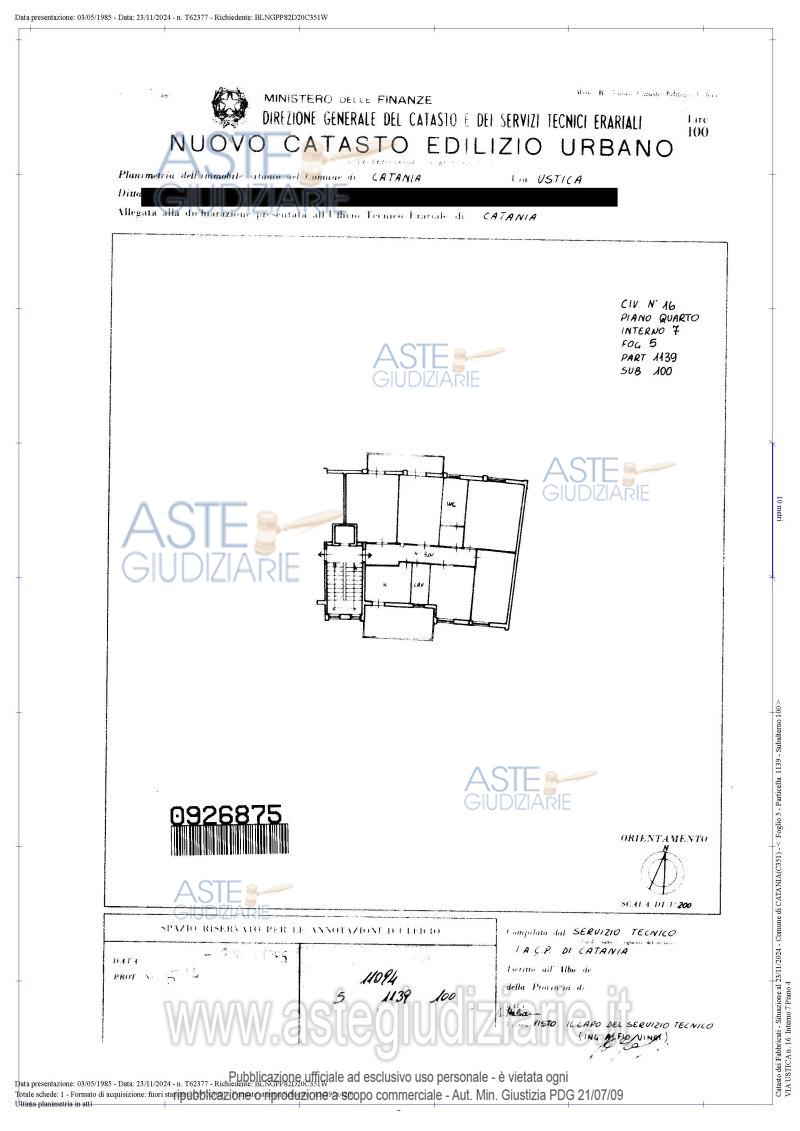 Vendita all'asta Senza incanto, con gara telematica sincrona - LOTTO UNICO: Appartamento con accesso principale dalla via Ustica n. 16 ed accesso secondario dal viale Adriatico s.n.c., posto al piano quarto, di vani 7. Prezzo base € 57.750,00 (offerta minima € 43.312,50). Data vendita 16/04/2026 ore 10:30. Giudice Cristiana Delfa. Professionista delegato alla vendita Avv. Sabina Farinato. Custode Giudiziario Avv. Sabina Farinato - Email "sabinaeffe@yahoo.it". Rif. Tribunale di Catania - Espropriazione immobiliare (cartabia) n. 388/2023