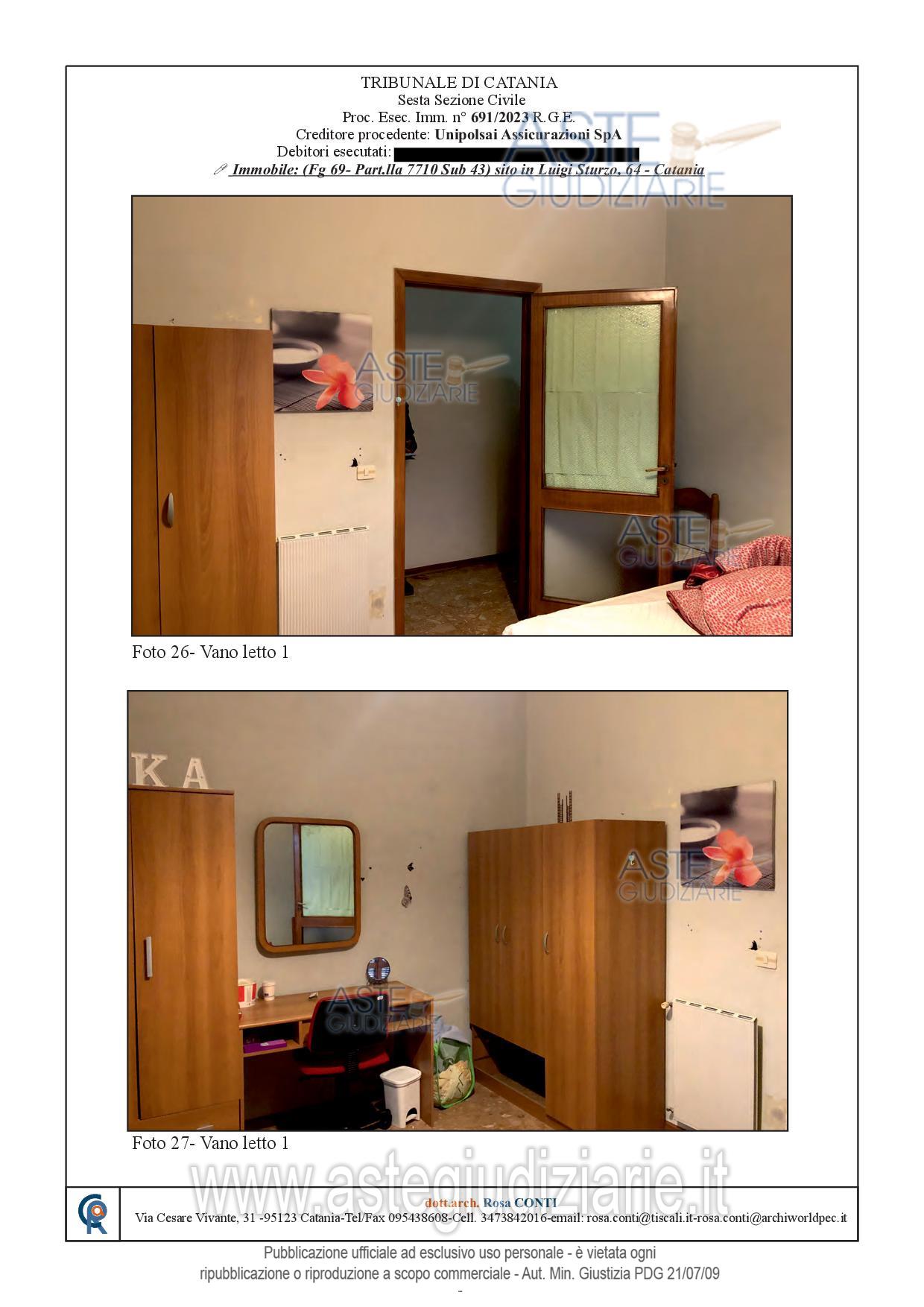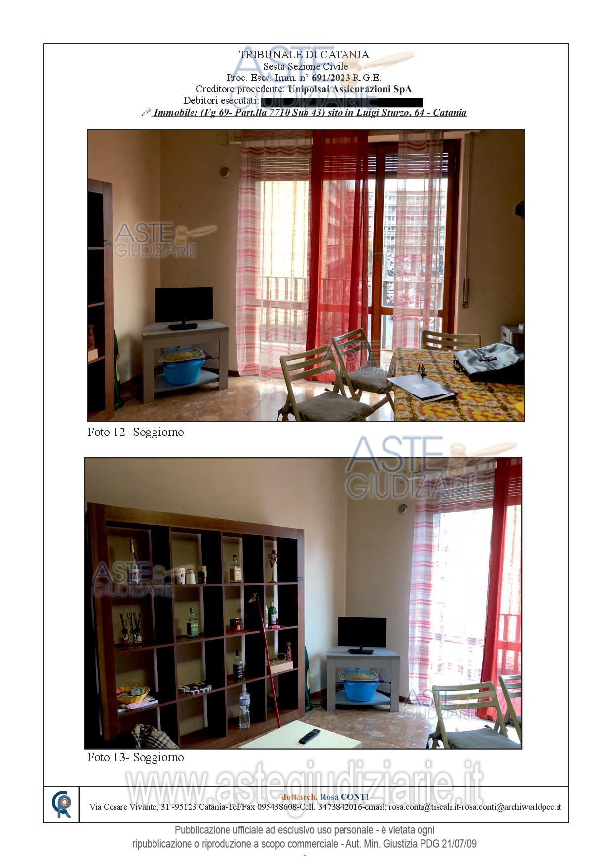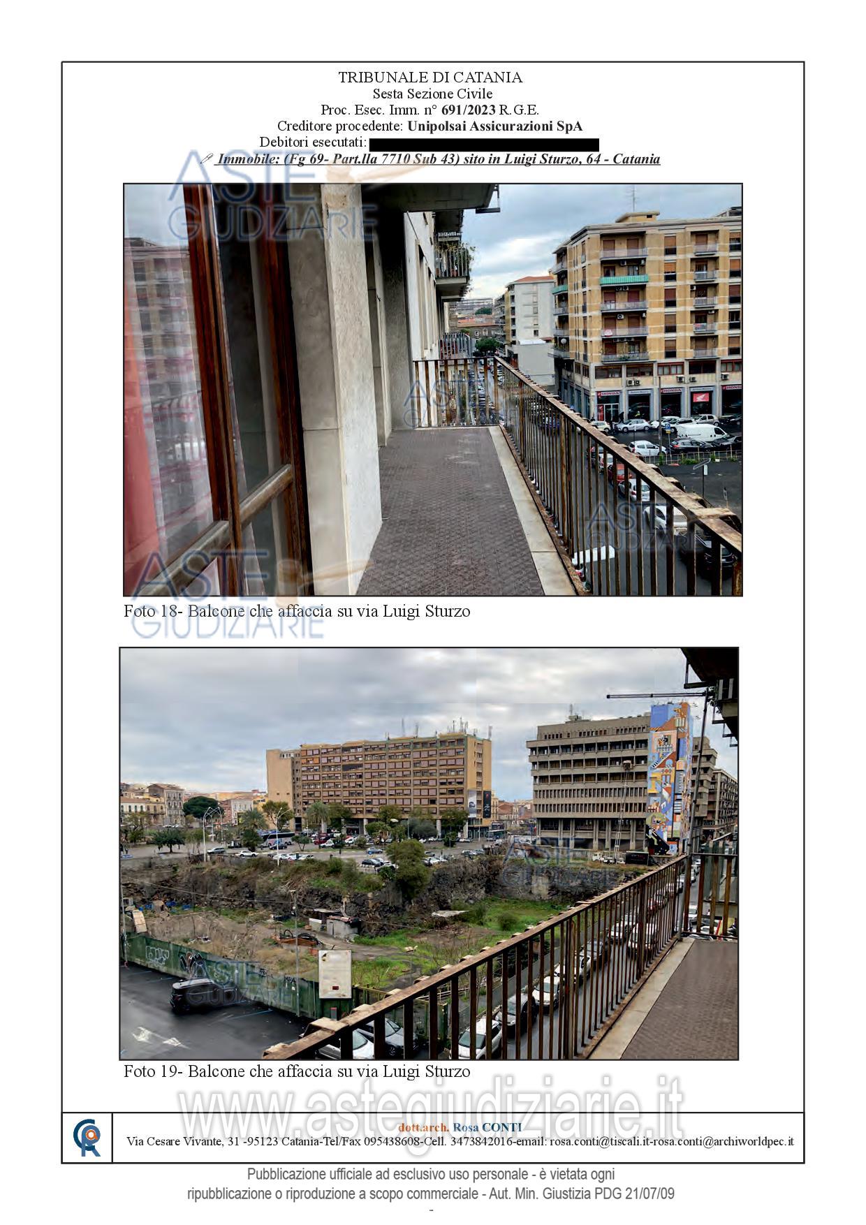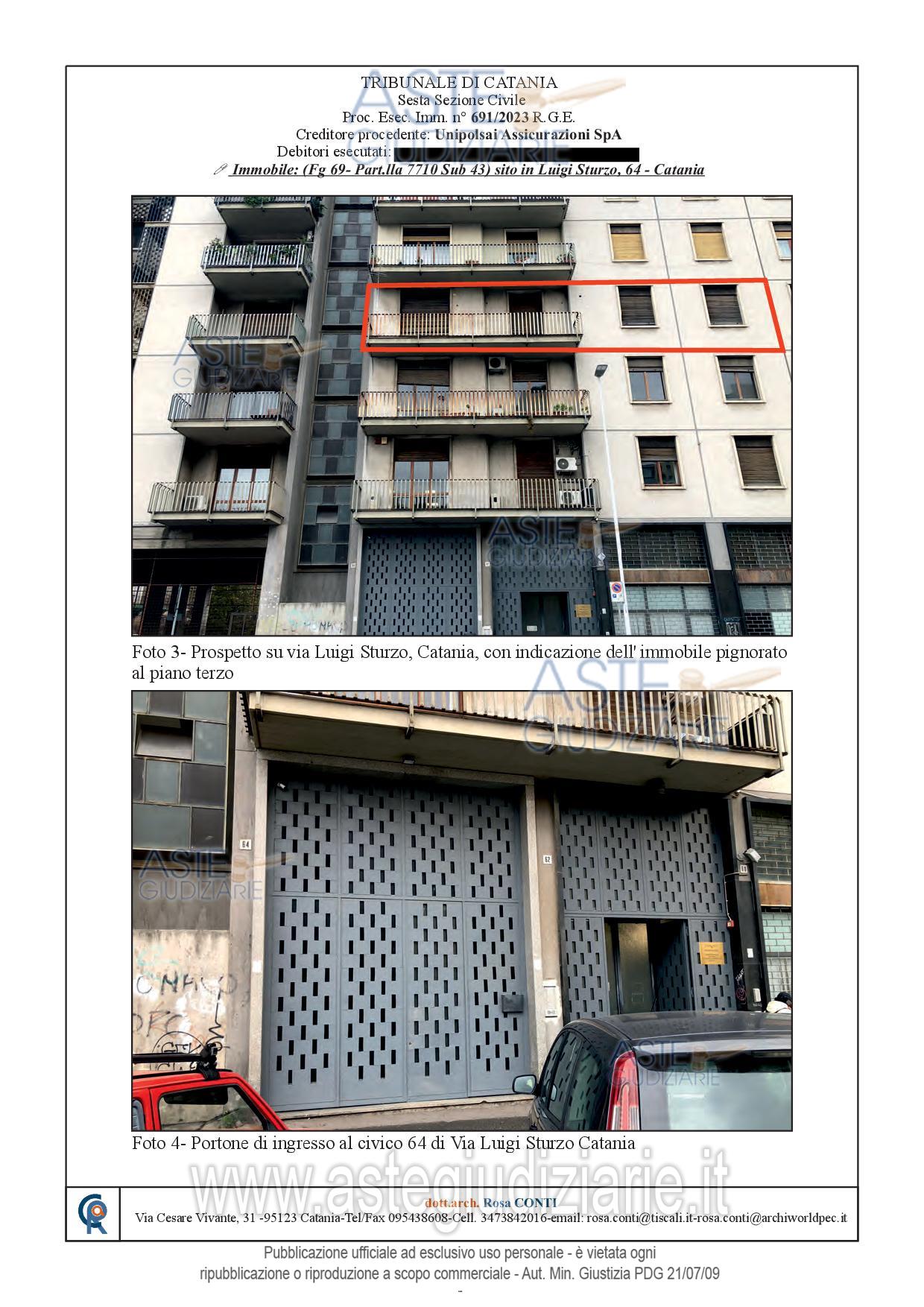 Vendita all'asta Senza incanto, con gara telematica sincrona - LOTTO UNICO: Appartamento sito in Catania, Via Luigi Sturzo n. 64, corpo C, posto al piano terzo, fabbricato dotato di ascensore, avente superficie commerciale di mq. 115,00 c.ca; identificato in C.F. del detto comune al Foglio 69, Particella 7710, Sub. 43, Categ. A/2, classe 6, consistenza vani 6, superficie catastale mq. 113, r.c. € 945,12. Prezzo base € 140.000,00 (offerta minima € 105.000,00). Data vendita 10/06/2026 ore 16:00. Professionista delegato alla vendita Avv. Daniela Marletta - Email "visite@aavg.it"; Tel. 0952163386. Custode Giudiziario Avv. Daniela Marletta - Email "visite@aavg.it"; Tel. 0952163386. Rif. Tribunale di Catania - Espropriazione immobiliare (cartabia) n. 691/2023
