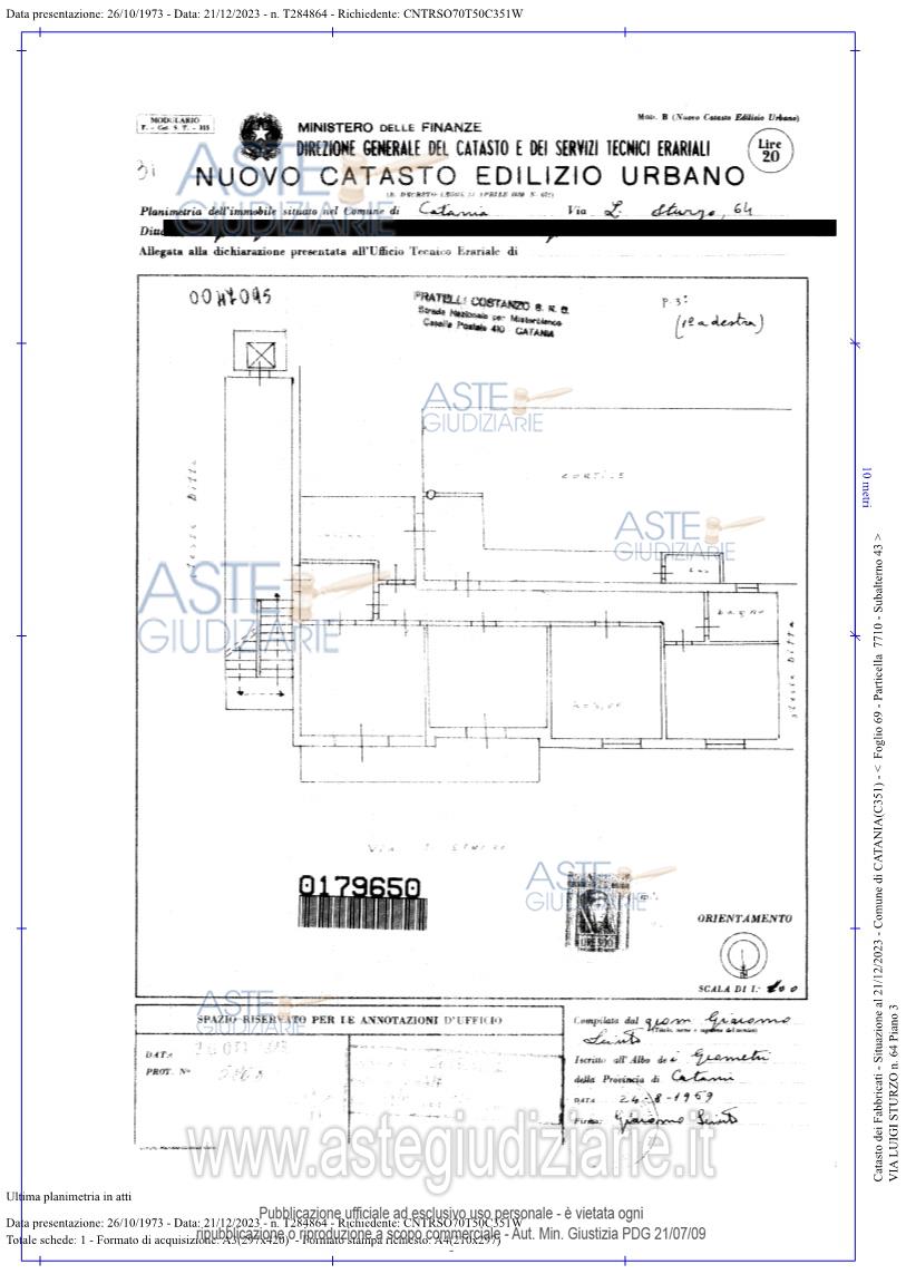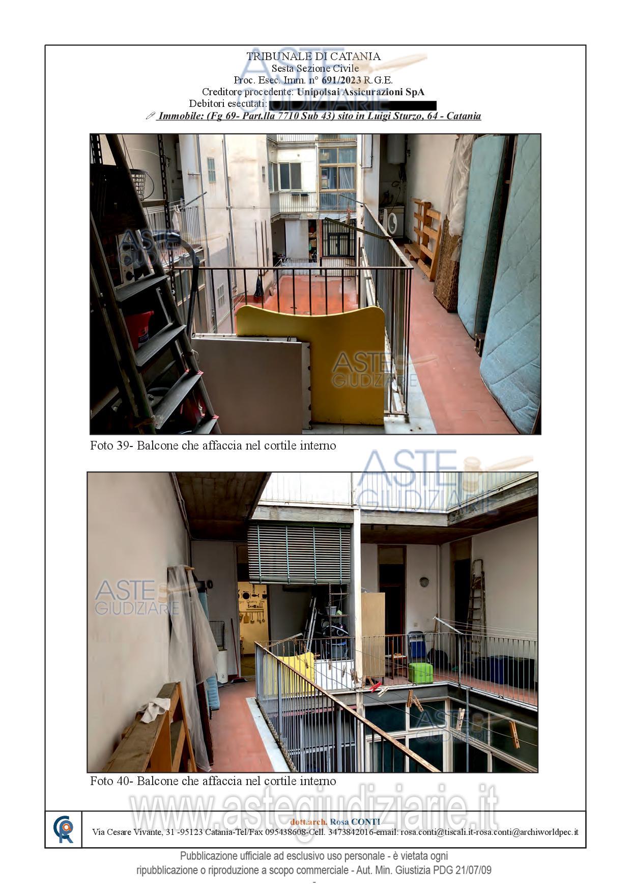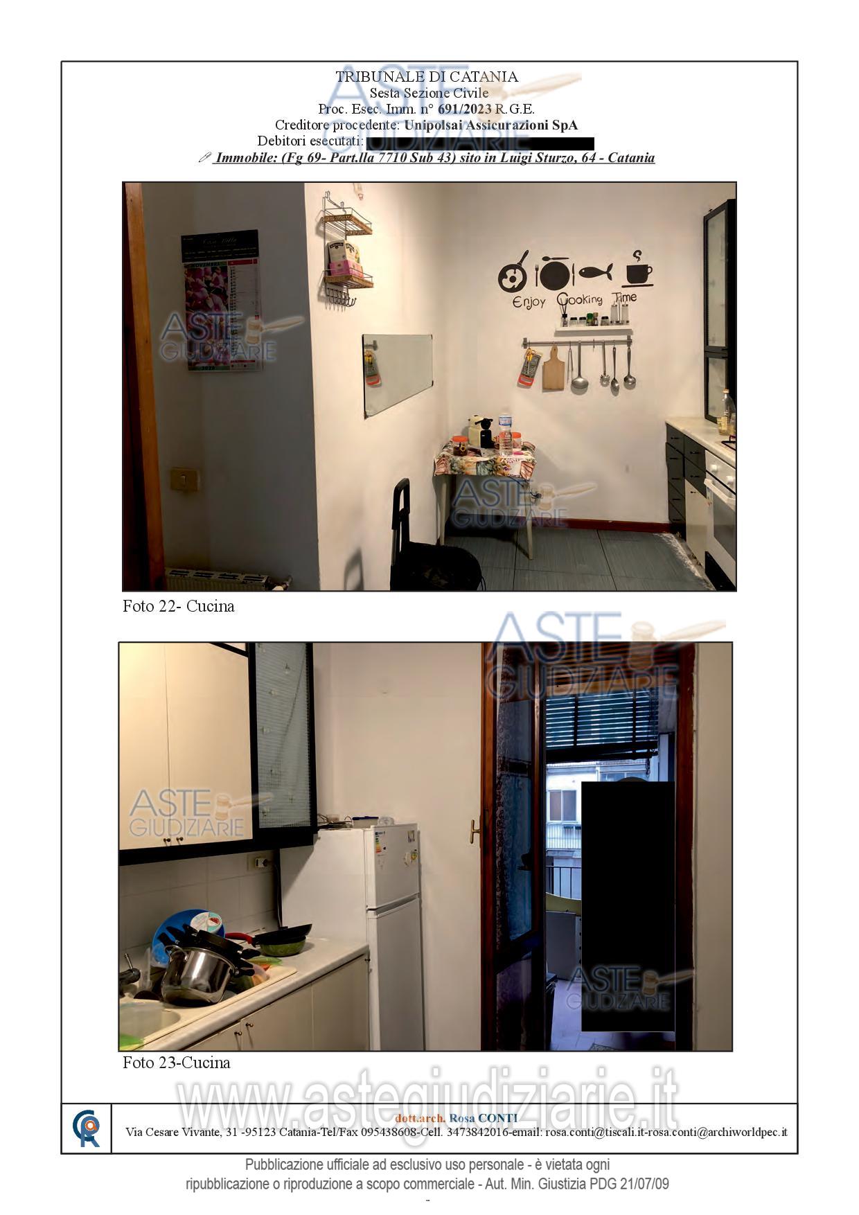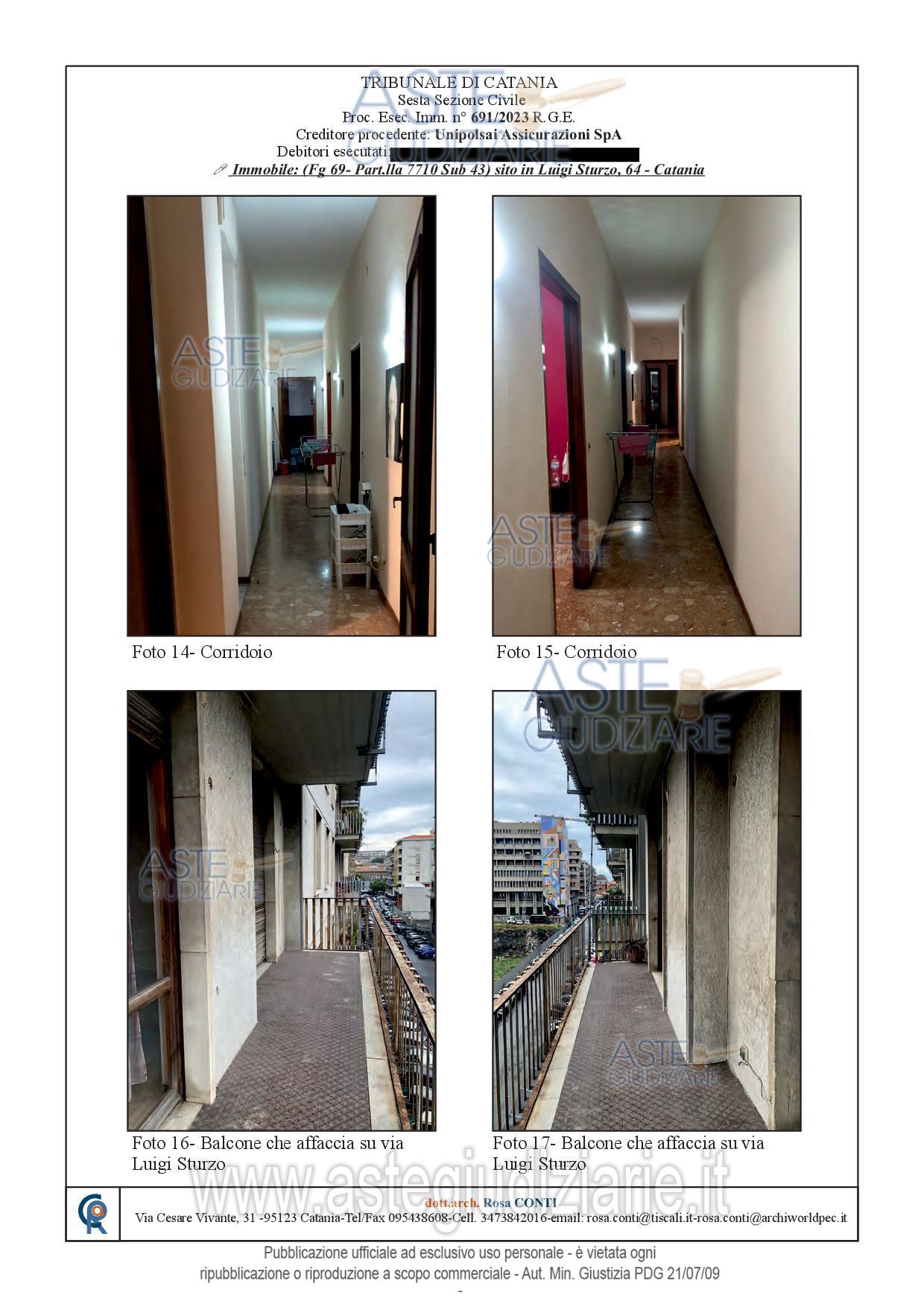 Vendita all'asta Senza incanto, con gara telematica sincrona - LOTTO UNICO: Appartamento sito in Catania, Via Luigi Sturzo n. 64, corpo C, posto al piano terzo, fabbricato dotato di ascensore, avente superficie commerciale di mq. 115,00 c.ca; identificato in C.F. del detto comune al Foglio 69, Particella 7710, Sub. 43, Categ. A/2, classe 6, consistenza vani 6, superficie catastale mq. 113, r.c. € 945,12. Prezzo base € 140.000,00 (offerta minima € 105.000,00). Data vendita 10/06/2026 ore 16:00. Professionista delegato alla vendita Avv. Daniela Marletta - Email "visite@aavg.it"; Tel. 0952163386. Custode Giudiziario Avv. Daniela Marletta - Email "visite@aavg.it"; Tel. 0952163386. Rif. Tribunale di Catania - Espropriazione immobiliare (cartabia) n. 691/2023