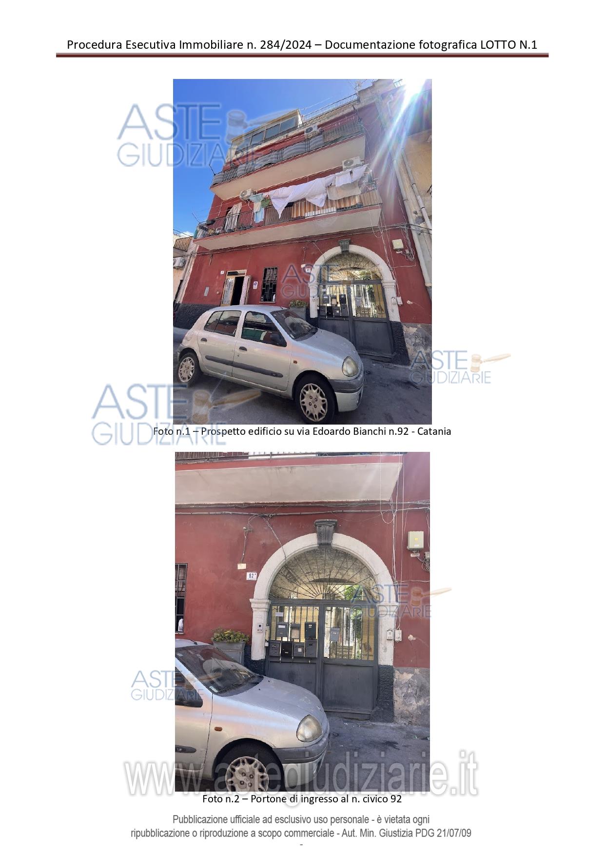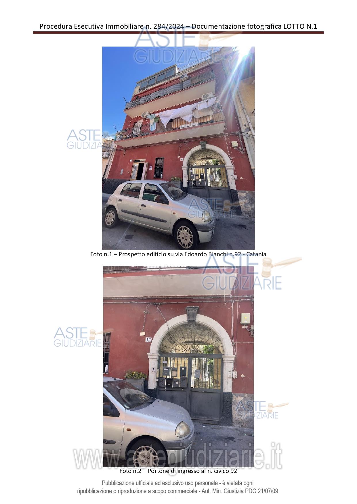 Vendita all'asta Senza incanto, con gara telematica sincrona - LOTTO 1: piena proprietà appartamento per civile abitazione sito a Catania, via Edoardo Bianchi n. 92, piano terzo, senza ascensore, facente parte di un edificio residenziale a tre elevazioni fuori terra, composto da tre vani ed accessori, superficie comm. mq. 63,79. Prezzo base € 37.500,00 (offerta minima € 28.125,00). Data vendita 19/06/2026 ore 11:00. Professionista delegato alla vendita: Dott. Rosario Maria Garra - Email "rosariomariagarra@gmail.com"; Tel. 095/504410; Cell. 375/5361199.