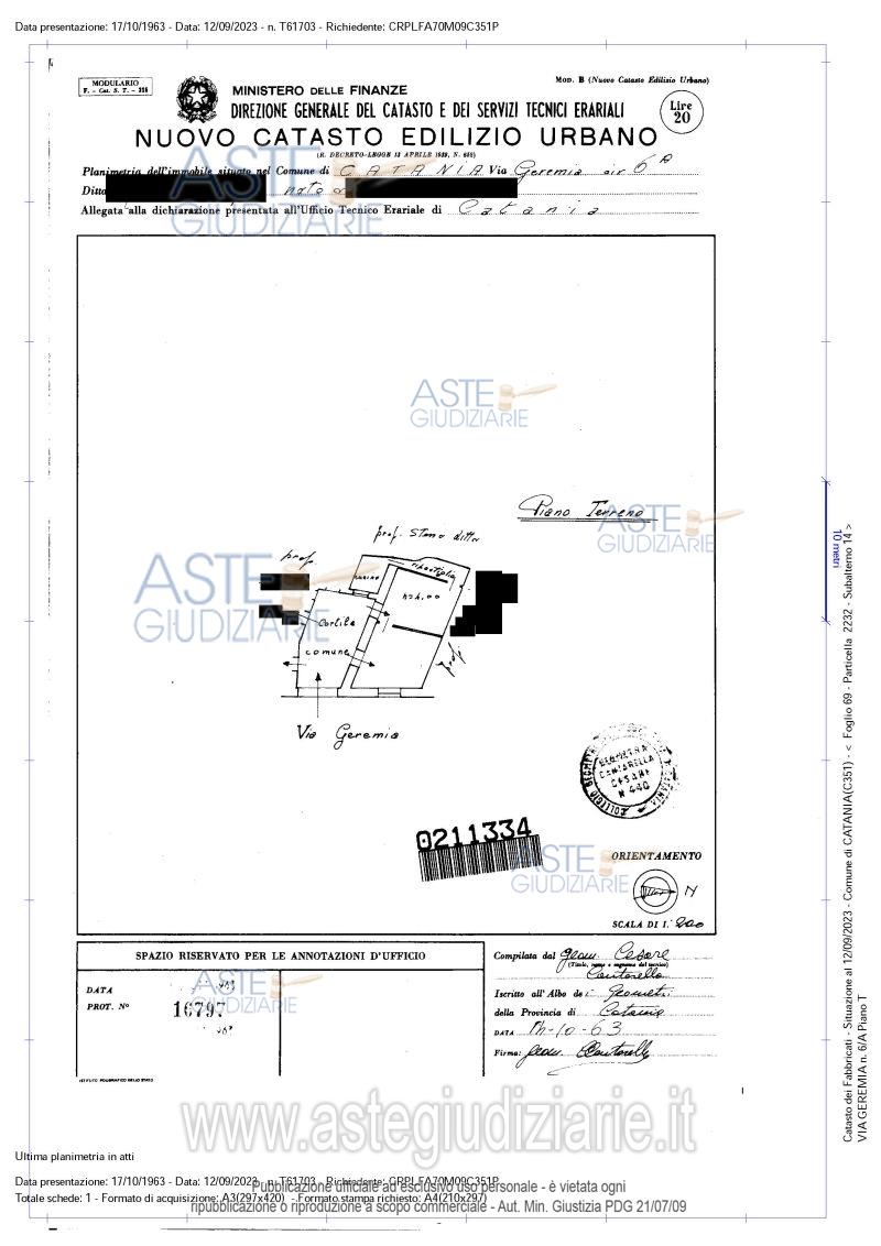 Vendita all'asta Senza incanto, con gara telematica sincrona - LOTTO UNICO: Lotto unico: immobile sito in Catania, via Geremia, 6/A, piano terra, censito nel N.C.E.U. del Comune di Catania al foglio 69, particella 2232, sub 14, categoria A/5, classe 7, consistenza 2,5 vani, superficie catastale totale 64 mq/totale escluso aree scoperte 64 mq, rendita catastale € 94,25. Prezzo base € 25.500,00 (offerta minima € 19.125,00). Data vendita 10/07/2026 ore 11:30. Giudice: Maria Acagnino.
