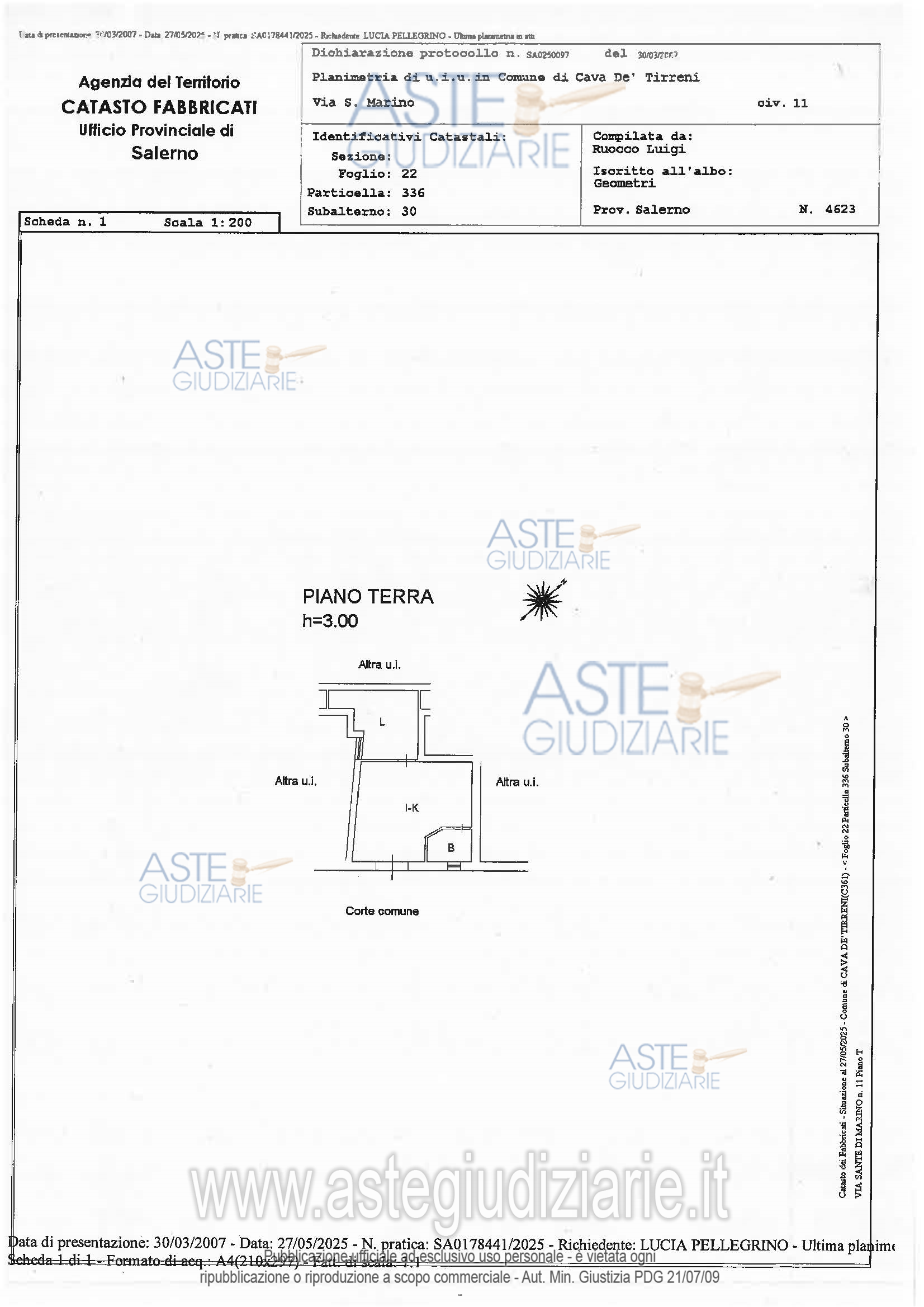 Vendita all'asta Senza incanto, con gara telematica asincrona - LOTTO UNICO: Immobile al piano terra che affaccia sulla corte del vecchio ospizio. In mediocrestato di conservazione è formato da un unico ambiente in difformità con la planimetriacatastale che riporta un ambiente giorno, camera da letto, bagno. Prezzo base € 43.470,00 (offerta minima € 32.602,50). Data inizio operazioni di vendita: 29/04/2026 ore 15:00. Professionista delegato alla vendita Dott. Domenico Apa. Custode Giudiziario Dott. Domenico Apa - Email "mirko.apa@libero.it". Rif. Tribunale di Nocera Inferiore - Espropriazione immobiliare (cartabia) n. 16/2025