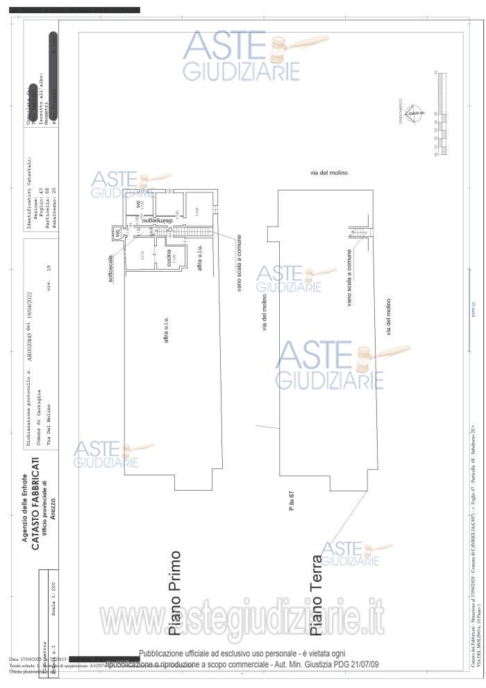 Vendita all'asta Senza incanto, con gara telematica sincrona mista - LOTTO UNICO: Piena proprietà su appartamento a piano primo del fabbricato sito in Cavriglia (AR), Via del Molino 19, con accesso da ingresso e scale comuni, composto da cucina, pranzo, soggiorno, due camere, bagno, disimpegno-ingresso, w.c. e sottoscala, corredato da resede esclusivo di circa 80 mq, in parte recintato, e cantina, identificato al C.F. a foglio 47, p.lla 68, sub 20, cat. A/3, classe 3, vani 6,5, r.c. € 352,48 e foglio 47, p.lla 199, sub 3 (graffata p.lla 73 sub 3), cat. C/2, cl 5, 24 mq, r.c € 140,06. Prezzo base € 64.000,00 (offerta minima € 48.000,00). Data vendita 14/05/2026 ore 09:00. Professionista delegato alla vendita Avv. Dario Viciani - Email "segreteria@studiolegalearezzo.it"; Cell. 3294515416; Tel. 057524848. Custode Giudiziario Istituto Vendite Giudiziarie Arezzo - Siena - Email "visite.ivg@gmail.com"; Cell. 3397337017; Tel. 0577318111. Rif. Tribunale di Arezzo - Espropriazione immobiliare (cartabia) n. 100/2024