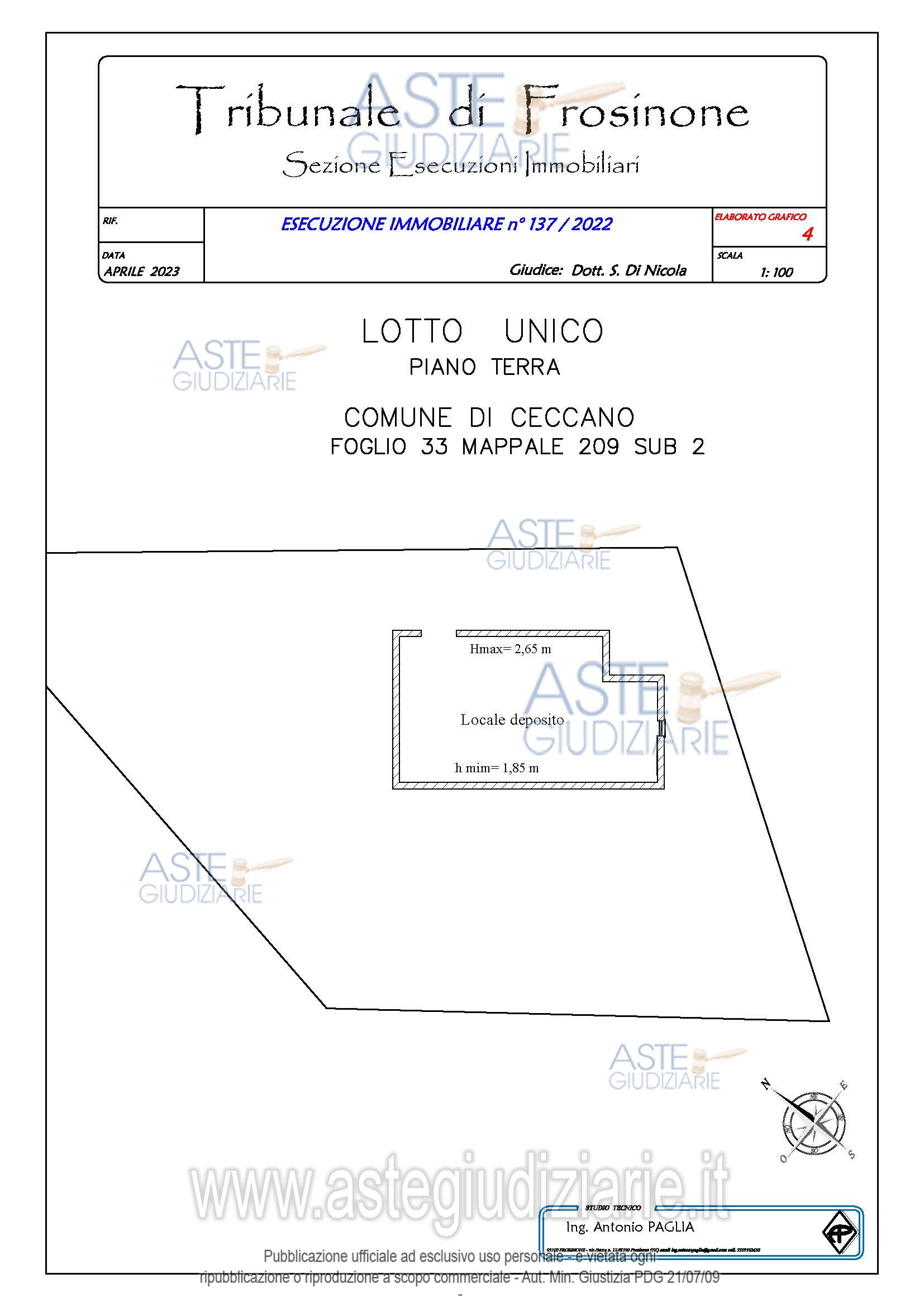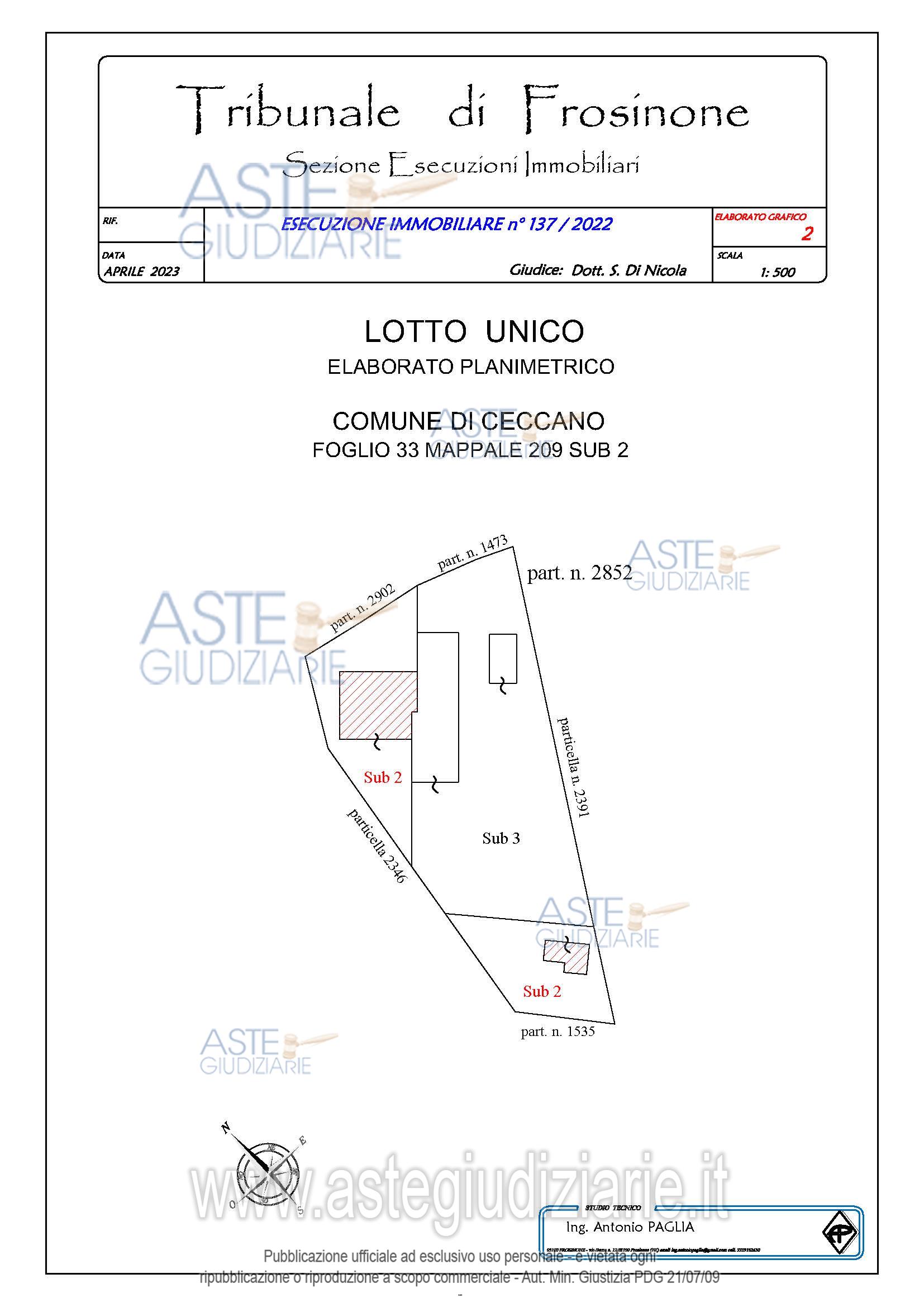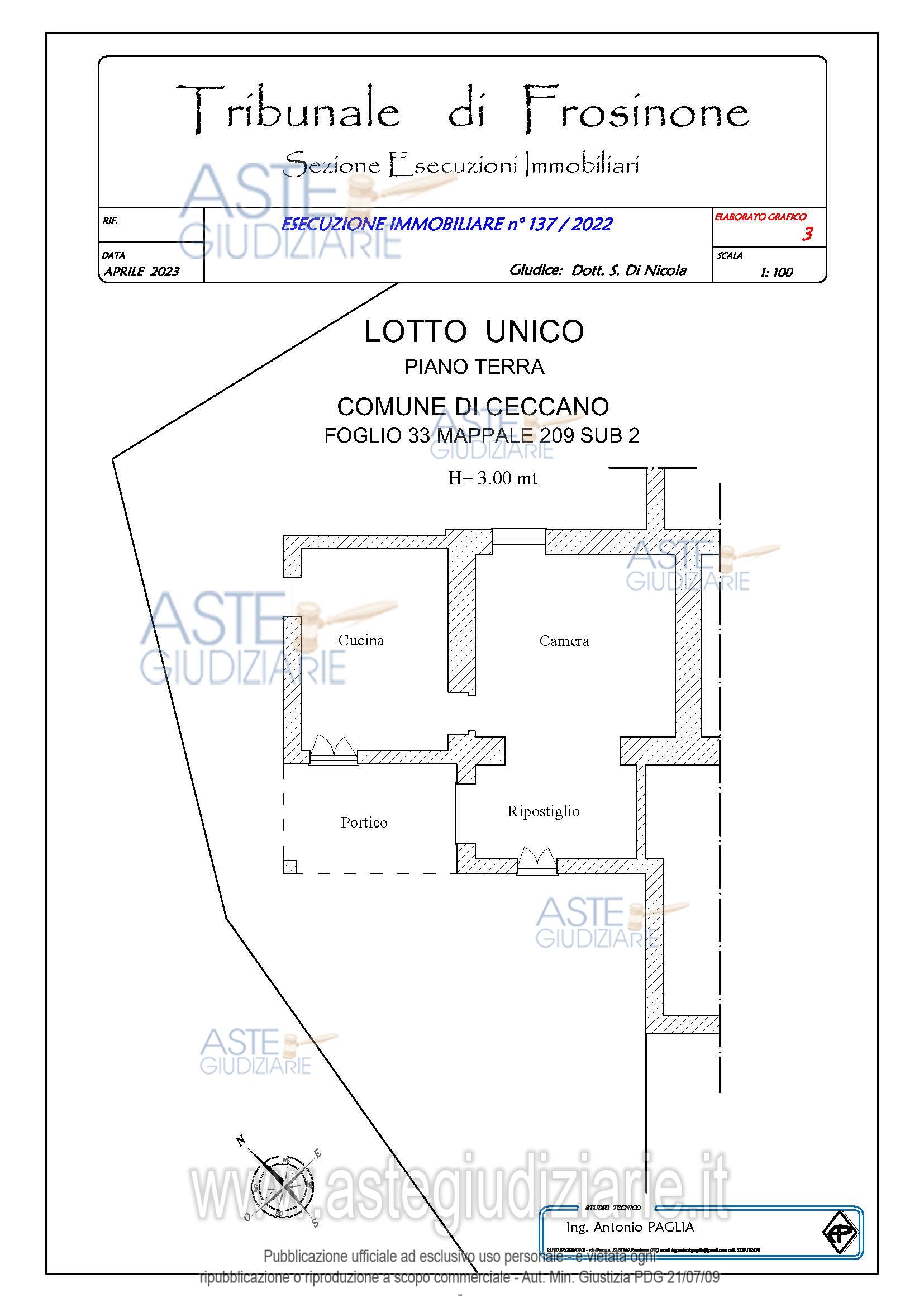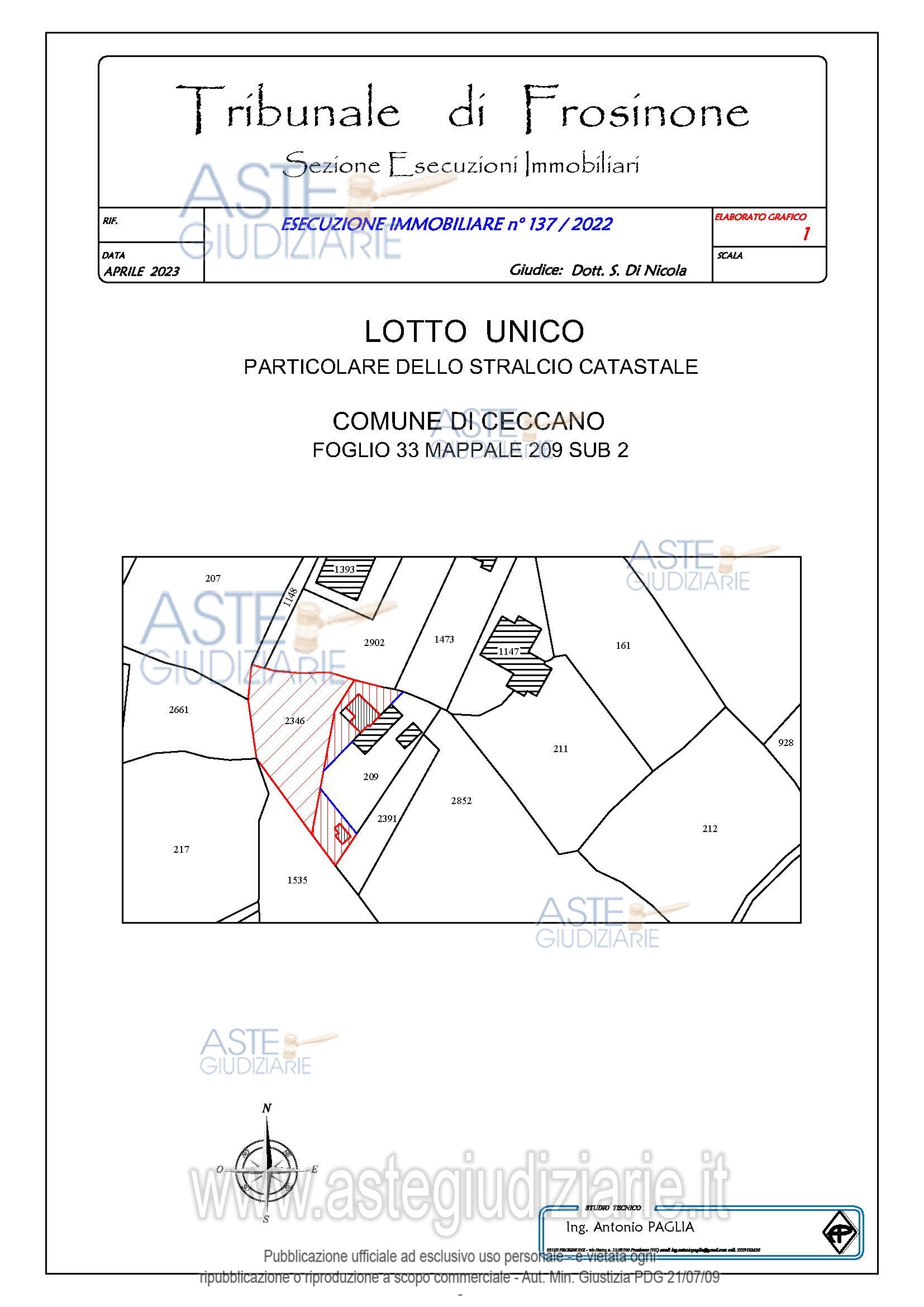 Vendita all'asta Senza incanto, con gara telematica asincrona - LOTTO UNICO: Piena proprietà di fabbricato civile ubicato a Ceccano (FR) - Via Madonna Del Carmine, piano T, identificato al Catasto Fabbricati - Fg. 33, Part. 209, Sub. 2, Categoria A3 e di terreno ubicato a Ceccano (FR) - Via Madonna Del Carmine, piano T, identificato al Catasto Terreni - Fg. 33, Part. 2346, Qualità Seminativo. Prezzo base € 27.632,82 (offerta minima € 20.724,62). Data inizio operazioni di vendita: 12/11/2025 ore 15:30. Giudice Andrea Petteruti. Professionista delegato alla vendita Avv. Simona Fanfarillo - Email "avvsimonafanfarillo@studiolegalecalnda.com"; Tel. 0775250043. Custode Giudiziario Avv. Simona Fanfarillo - Email "avvsimonafanfarillo@studiolegalecalenda.com"; Tel. 0775250043. Rif. Tribunale di Frosinone - Esecuzione immobiliare post legge 80 n. 137/2022