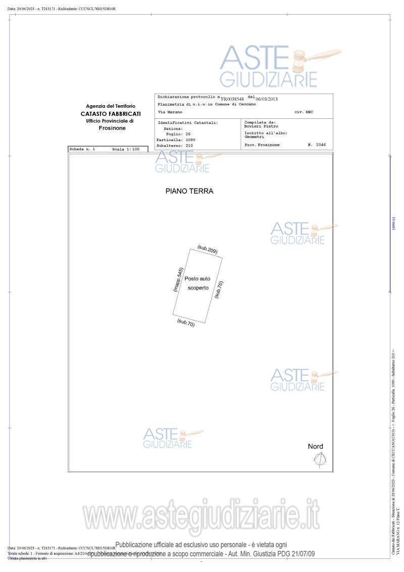 Vendita all'asta Senza incanto, con gara telematica asincrona - LOTTO 1: Compendio ubicato a Ceccano (FR) - via Marano 12, edificio A, interno A1, piano T. Prezzo base € 45.352,00 (offerta minima € 34.014,00). Data inizio operazioni di vendita: 16/12/2025 ore 10:30. Giudice Simona Di Nicola. Professionista delegato alla vendita Dott. Fabiola Luciani - Email "fabiolaluciani@libero.it"; Tel. 0775210357. Custode Giudiziario Dott. Fabiola Luciani - Email "fabiolaluciani@libero.it"; Tel. 0775210357. Rif. Tribunale di Frosinone - Esecuzione immobiliare post legge 80 n. 18/2023