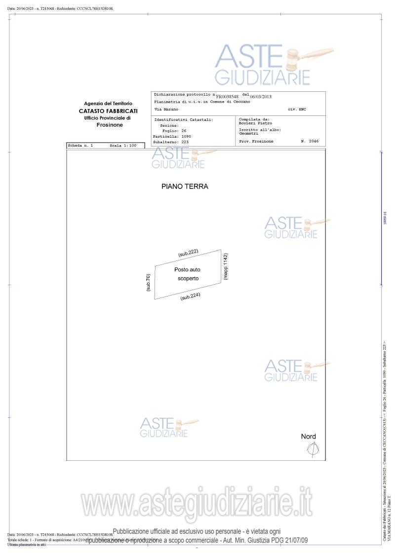 Vendita all'asta Senza incanto, con gara telematica asincrona - LOTTO 21: Compendio ubicato a Ceccano (FR) - via Marano 12, edificio D, interno D5, piano T. Prezzo base € 31.894,00 (offerta minima € 23.920,00). Data inizio operazioni di vendita: 16/12/2025 ore 10:30. Giudice Simona Di Nicola. Professionista delegato alla vendita Dott. Fabiola Luciani - Email "fabiolaluciani@libero.it"; Tel. 0775210357. Custode Giudiziario Dott. Fabiola Luciani - Email "fabiolaluciani@libero.it"; Tel. 0775210357. Rif. Tribunale di Frosinone - Esecuzione immobiliare post legge 80 n. 18/2023
