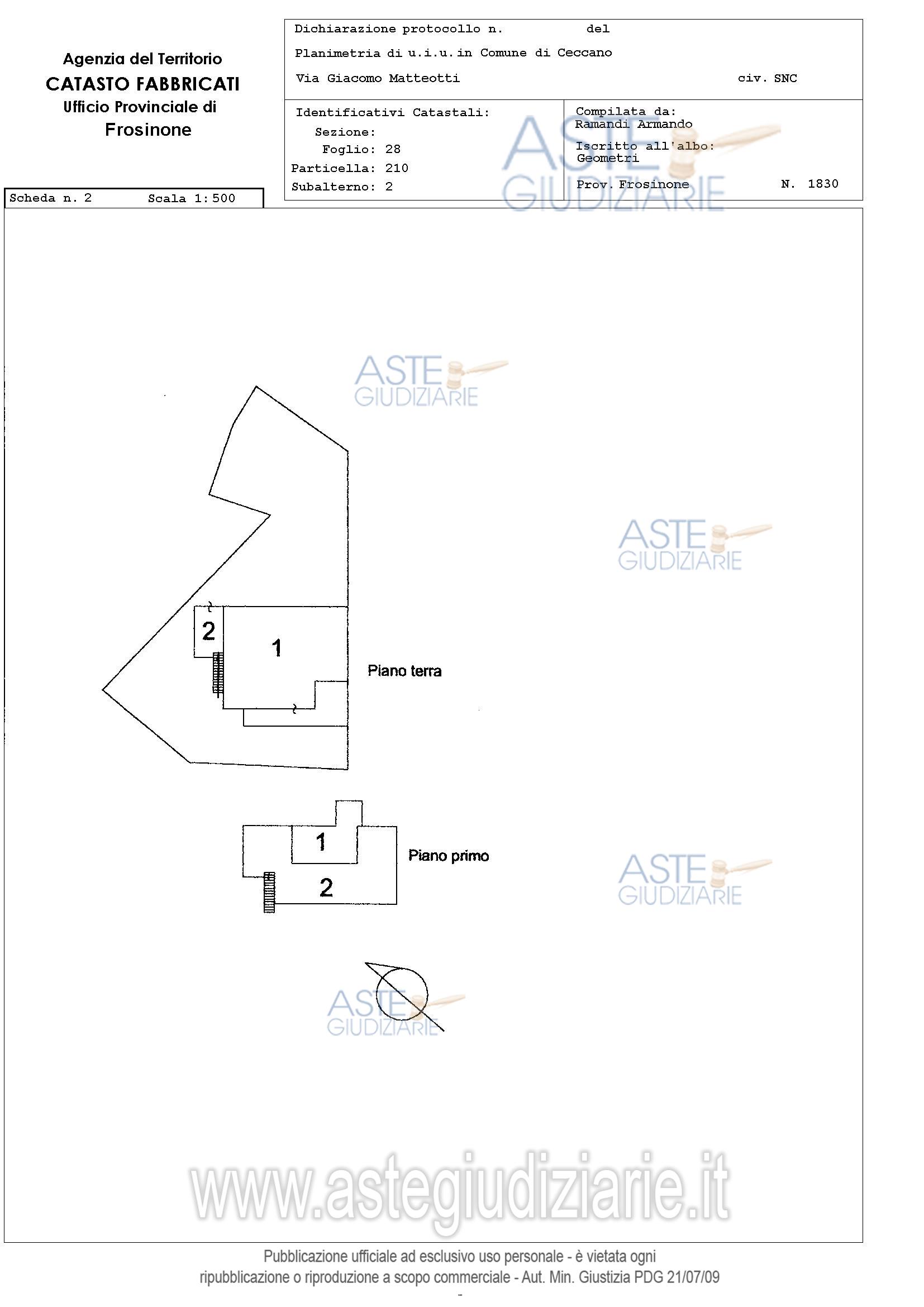 Vendita all'asta Senza incanto, con gara telematica asincrona - LOTTO 1: Bene 1 – Piena Proprietà (1/1) Fabbricato civile; Bene 2 - Piena Proprietà (1/1) Terreno. Prezzo base € 34.715,00 (offerta minima € 26.036,25). Data inizio operazioni di vendita: 05/05/2026 ore 16:30. Giudice Dott. Francesco Ferdinandi. Professionista delegato alla vendita Avv. Antonio Mosetti - Email "mosettistudiolegale@gmail.com"; Tel. 0775212174. Custode Giudiziario Avv. Antonio Mosetti - Email "mosettistudiolegale@gmail.com"; Tel. 0775212174. Rif. Tribunale di Frosinone - Contenzioso civile n. 836/2023