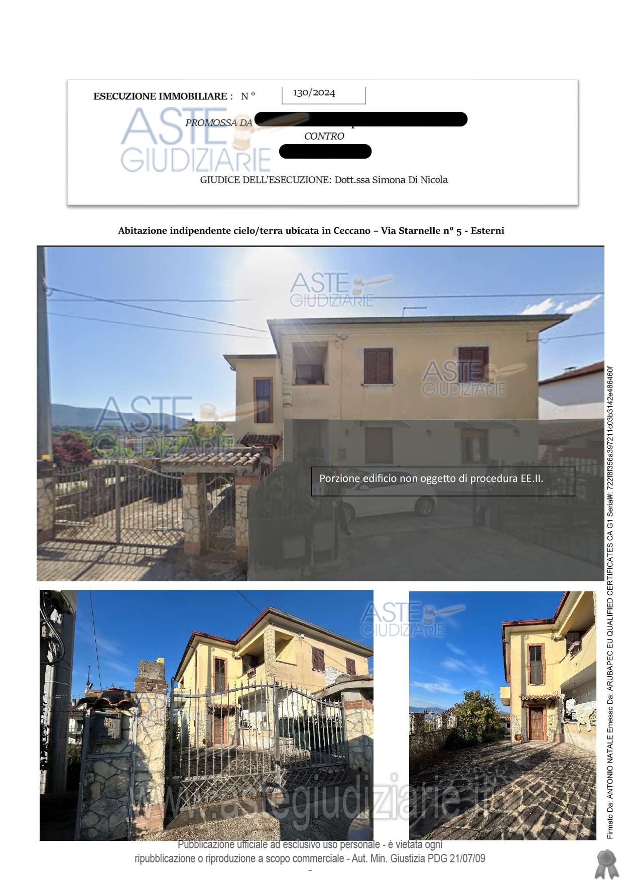 Vendita all'asta Senza incanto, con gara telematica asincrona - LOTTO 1: Appartamento al piano seminterrato, terra e primo. Prezzo base € 95.640,00 (offerta minima € 71.730,00). Data inizio operazioni di vendita: 19/05/2026 ore 15:00. Giudice Simona Di Nicola. Professionista delegato alla vendita Avv. Eleonora Marcoccia - Email "avveleonoramarcoccia@libero.it". Custode Giudiziario Avv. Eleonora Marcoccia - Email "avveleonoramarcoccia@libero.it". Rif. Tribunale di Frosinone - Espropriazione immobiliare (cartabia) n. 130/2024