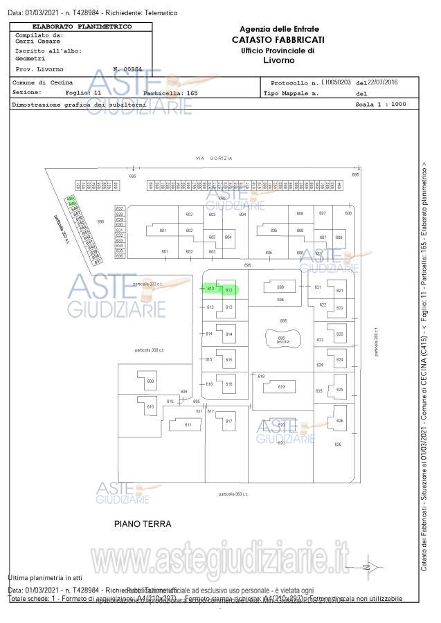 Vendita all'asta Senza incanto, con gara telematica asincrona - LOTTO 4: Unità abitativa adibita a CAV completamente ammobiliata posta al piano terra e distinta con l’interno 12 con due posti auto scoperti, meglio descritta in avviso. Prezzo base € 173.825,00 (offerta minima € 130.370,00). Data inizio operazioni di vendita: 08/04/2026 ore 10:00. In caso di più offerte valide si procederà a gara che inizierà il 08/04/2026 ore 10:00 e terminerà il 15/04/2026 ore 12:00. Giudice Dott. Franco Pastorelli. Curatore Dott. Michele Lorenzini. Rif. Tribunale di Livorno - Fallimentare (nuovo rito) n. 5/2023