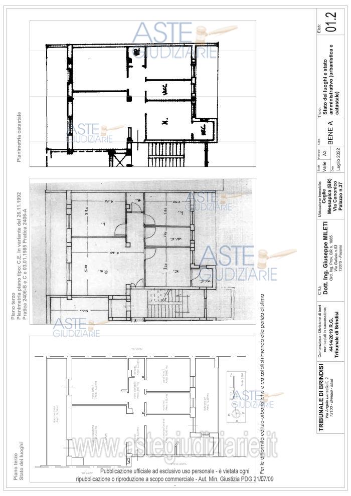 Vendita all'asta Senza incanto, con gara telematica asincrona - LOTTO UNICO: Appartamento ubicato in Ceglie Messapica (Br) alla via Canonico Palazzo n.37, ubicato al piano 3^ e servito da un vano scala condominiale completo di ascensore, della superficie commerciale di mq.1. Prezzo base € 70.125,00 (offerta minima € 70.125,00). Data inizio operazioni di vendita: 22/06/2026 ore 10:20. Giudice Francesco Giliberti. Professionista delegato alla vendita Avv. Edvige Pagliara - Email "edpagliara@libero.it"; Cell. 3683064636; Tel. 0804392664. Rif. Tribunale di Brindisi - Contenzioso civile n. 4414/2019