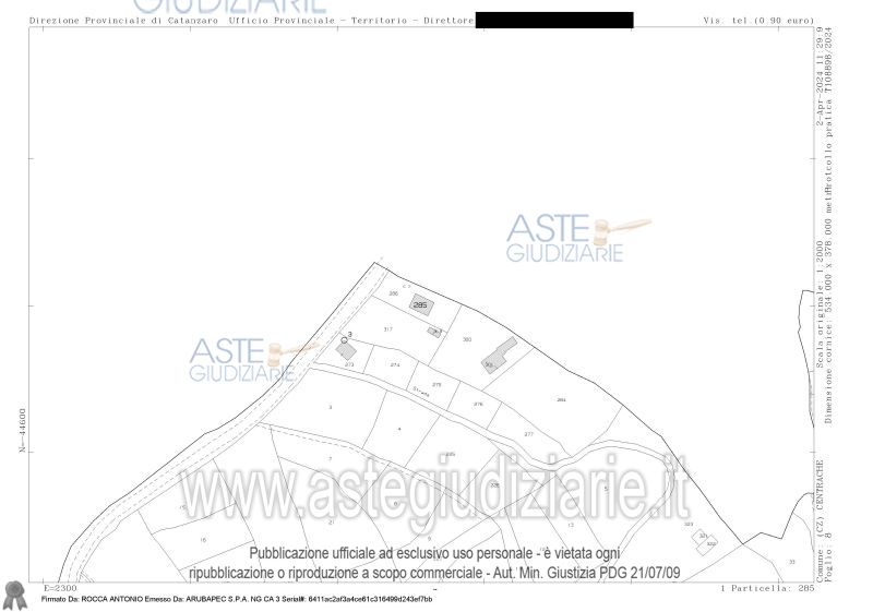 Vendita all'asta Senza incanto, con gara telematica asincrona - LOTTO UNICO: Piena proprietà di immobili: 1. terreno, superficie di mq 949; attualmente occupato. Prezzo base € 41.316,64 (offerta minima € 30.987,48). Data inizio operazioni di vendita: 16/03/2026 ore 10:00. Giudice Dott. Francesca Rinaldi. Professionista delegato alla vendita Dott. Stefano Figliomeni - Email "figliomenistefano@gmail.com"; Tel. 3496544451. Custode Giudiziario Dott. Stefano Figliomeni - Email "figliomenistefano@gmail.com"; Tel. 3496544451. Rif. Tribunale di Catanzaro - Esecuzione immobiliare n. 74/2023