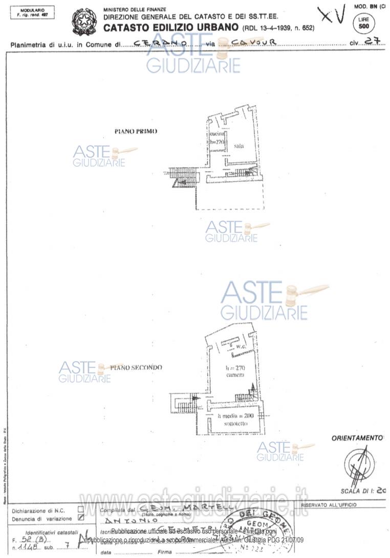 Vendita all'asta Senza incanto, con gara telematica asincrona - LOTTO UNICO: COMUNE DI CERANO (NO) – Via Cavour n. 27Quota intera di piena proprietàUnità immobiliare posta al piano primo e secondo di un fabbricato per civile abitazione. Prezzo base € 21.000,00 (offerta minima € 15.750,00). Data inizio operazioni di vendita: 01/07/2026 ore 12:00. Professionista delegato alla vendita: Not. Gian Vittorio Cafagno - Email "novaraprocedureesecutive@gmail.com"; Tel. 0321/640095.