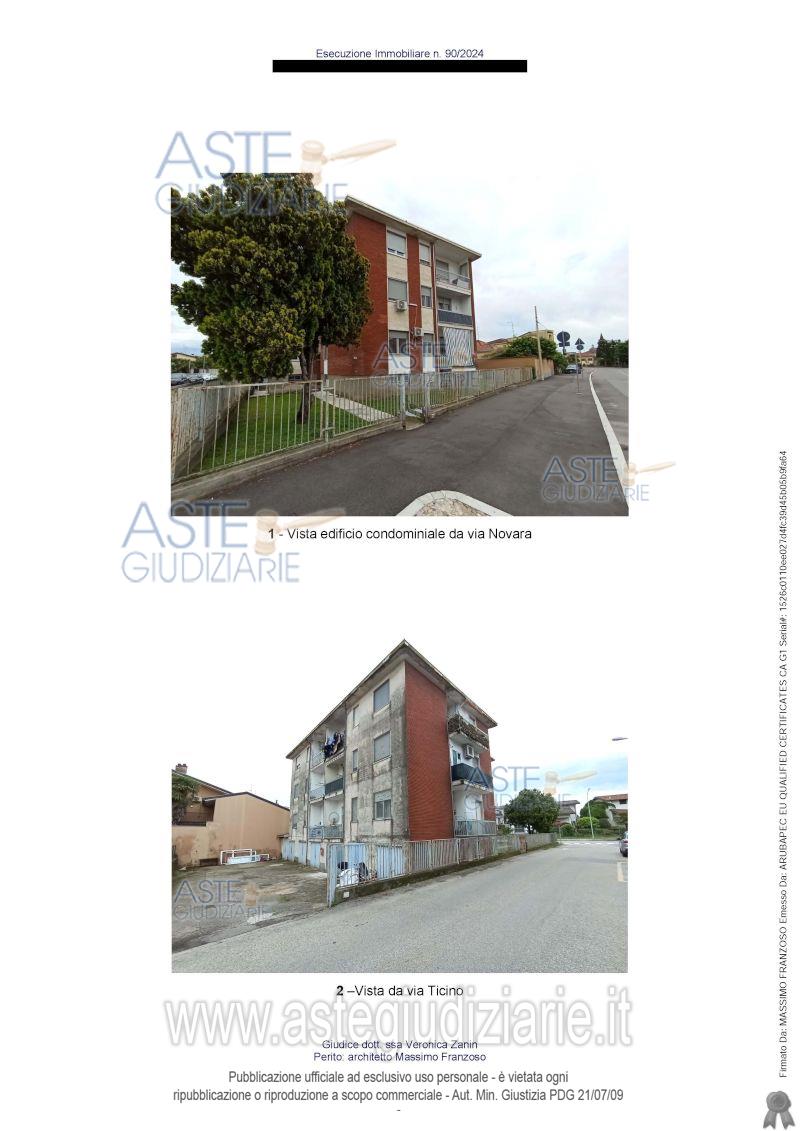 Vendita all'asta Senza incanto, con gara telematica asincrona - LOTTO UNICO: Piena proprietà per la quota di 1000/1000 di appartamento con autorimessa in edificio a regime condominiale. L’unità immobiliare, ubicata al piano rialzato (1° f.t.), con accesso da scala comune, è così articolata: ingresso, locale soggiorno-pranzo, cucina, disimpegno, camera doppia, servizio igienico, camera singola e n. 2 balconi scoperti con affaccio sulle aree comuni. Fanno inoltre parte della proprietà, un locale cantina e un’autorimessa, entrambi ubicati al piano seminterrato. Prezzo base € 62.000,00 (offerta minima € 46.500,00). Data inizio operazioni di vendita: 13/05/2026 ore 12:00. Giudice Rossella Incardona. Professionista delegato alla vendita Dott. Claudia Mazza - Email "segreteria@davnovara.it". Custode Giudiziario Lorenzo Vigone - Email "richiestevisite.novara@ivgpiemonte.it"; Tel. 0321628676. Rif. Tribunale di Novara - Espropriazione immobiliare (cartabia) n. 90/2024