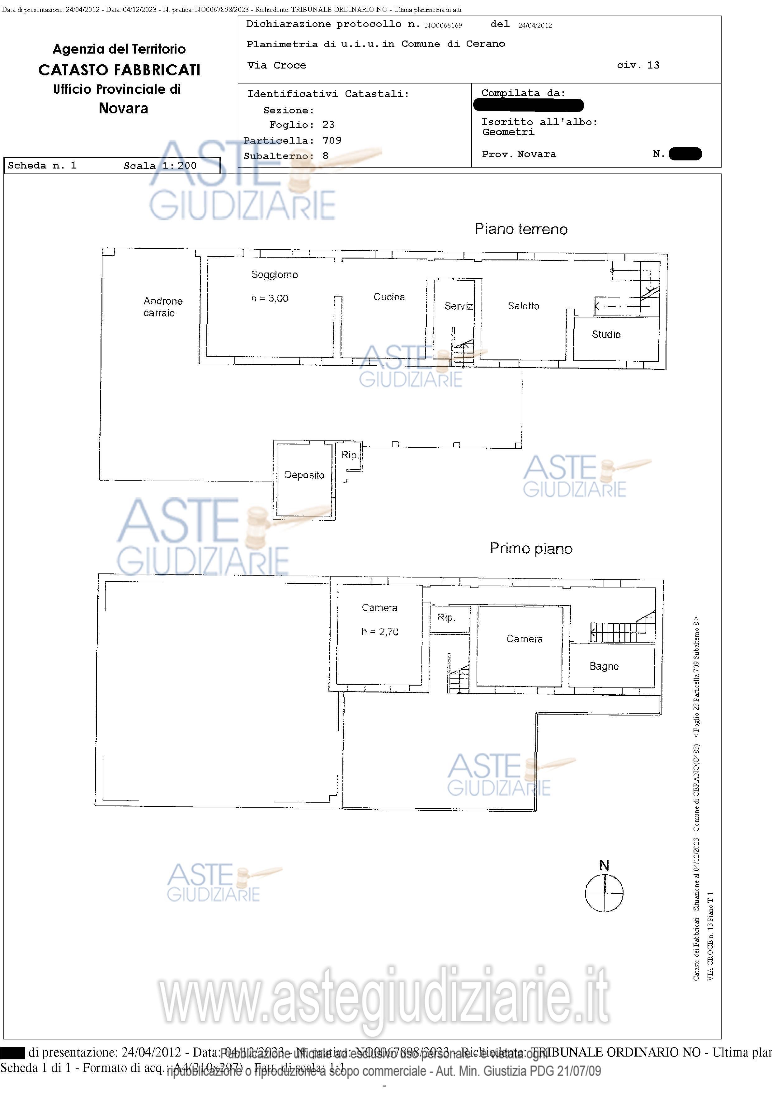 Vendita all'asta Senza incanto, con gara telematica asincrona - LOTTO 1: Intera piena proprietà di parte di fabbricato in Cerano (NO) Via Croce 43-45-47.Alloggio composto da: al pt soggiorno, cucina, sottoscala, salotto, studio e vano scala interno che conduce al p1 dove si trovano bagno, 2 camere e ripostiglio collegati da un corridoio. Esternamente al pt si trovano anche un sevizio igienico ed un deposito. Completano la dotazione le parti comuni esterne (giardino, androne, scala comune, terrazzo). Accesso carraio dai civici 43 e 47 e soltanto pedonale dal numero civico 45. Prezzo base € 70.000,00 (offerta minima € 52.500,00). Data inizio operazioni di vendita: 12/06/2026 ore 12:00. Giudice Rossella Incardona. Professionista delegato alla vendita Avv. Daniela Negri - Email "segreteria@davnovara.it". Custode Giudiziario Lorenzo Vigone - Email "richiestevisite.novara@ivgpiemonte.it"; Tel. 0321628676. Rif. Tribunale di Novara - Esecuzione immobiliare post legge 80 n. 153/2022