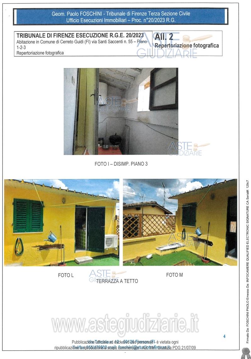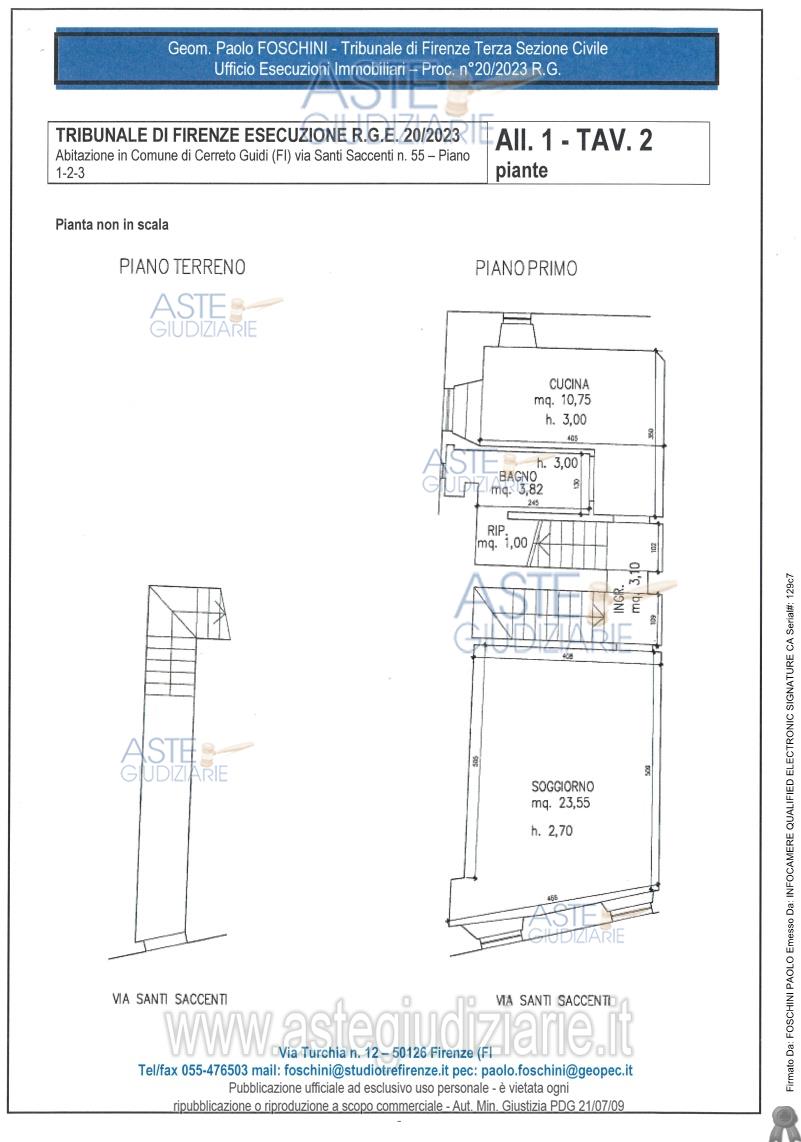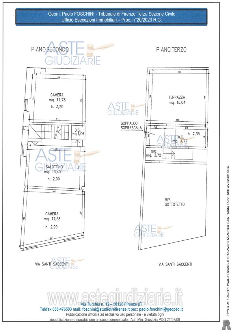 Vendita all'asta Senza incanto, con gara telematica sincrona - LOTTO UNICO: Diritto di piena proprietà (1/1) di appartamento per civile abitazione posto al piano primo e secondo, oltre a piano terzo sottotetto, facente parte di un fabbricato di risalente costruzione. L’appartamento ha accesso indipendente dal vano scale a comune ed è così composto: al pianoprimo da due vani, compresa la cucina, oltre disimpegno e w.c.; al piano secondo, raggiungibile dascala interna, è composto da tre vani, dei quali uno di passaggio. Prezzo base € 98.250,00 (offerta minima € 73.687,50). Data vendita 26/06/2026 ore 16:00. Giudice Agata Stanga. Professionista delegato alla vendita Avv. Filippo Bavazzano - Email "avvfilippobavazzano@gmail.com". Custode Giudiziario Istituto Vendite Giudiziarie Di Firenze - Email "prenota.fi@isveg.it"; Tel. 0552340830. Rif. Tribunale di Firenze - Esecuzione immobiliare post legge 80 n. 20/2023