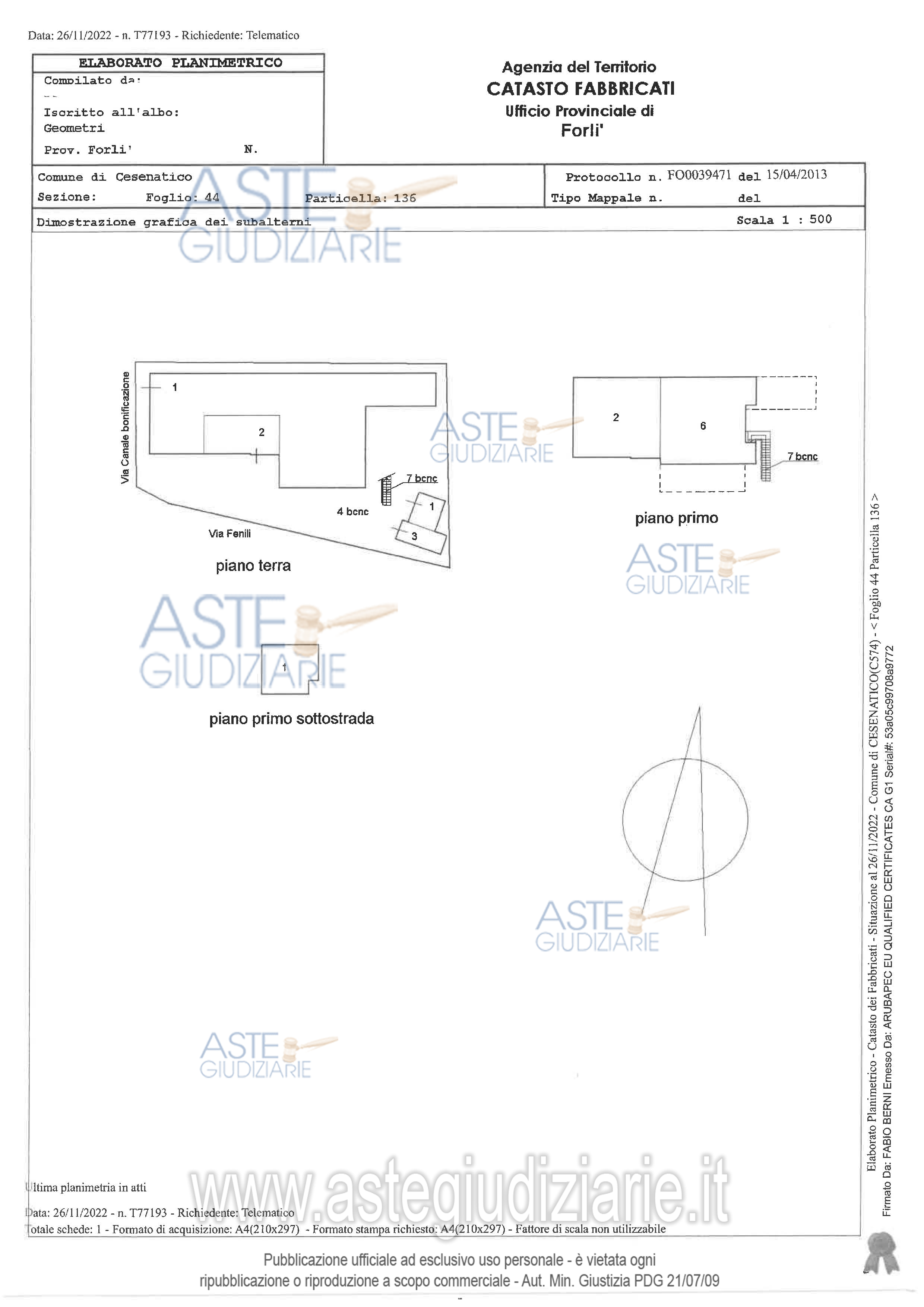 Custode Giudiziario: Avv. Erica Cuni - Email "avv.ericacuni@gmail.com"; Tel. 0547/612005.