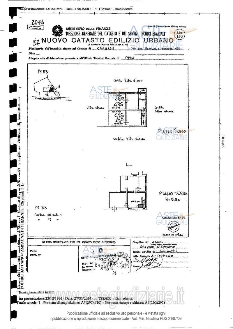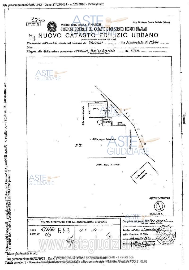 Vendita all'asta Senza incanto, con gara telematica asincrona - LOTTO 1: LOTTO 1 - In Comune di CHIANNI (PI), sulla strada provinciale per Miemo, piena proprietà dell'intero di un compendio immobiliare denominato Podere Baccano con sovrastante fabbricato per abitazioni, elevato su due piani fuori terra (oltre a sottotetto), in fase di ricostruzione - ristrutturazione sospesa nell'anno 2012. Prezzo base € 569.000,00 (offerta minima € 426.750,00). Data inizio operazioni di vendita: 10/04/2026 ore 15:00. Giudice Marco Zinna. Professionista delegato alla vendita Not. Anna Gaudiano. Custode Giudiziario Cosimo Erriquez - Email "prenotazionipisa@astagiudiziaria.com". Rif. Tribunale di Pisa - Esecuzione immobiliare post legge 80 n. 318/2012