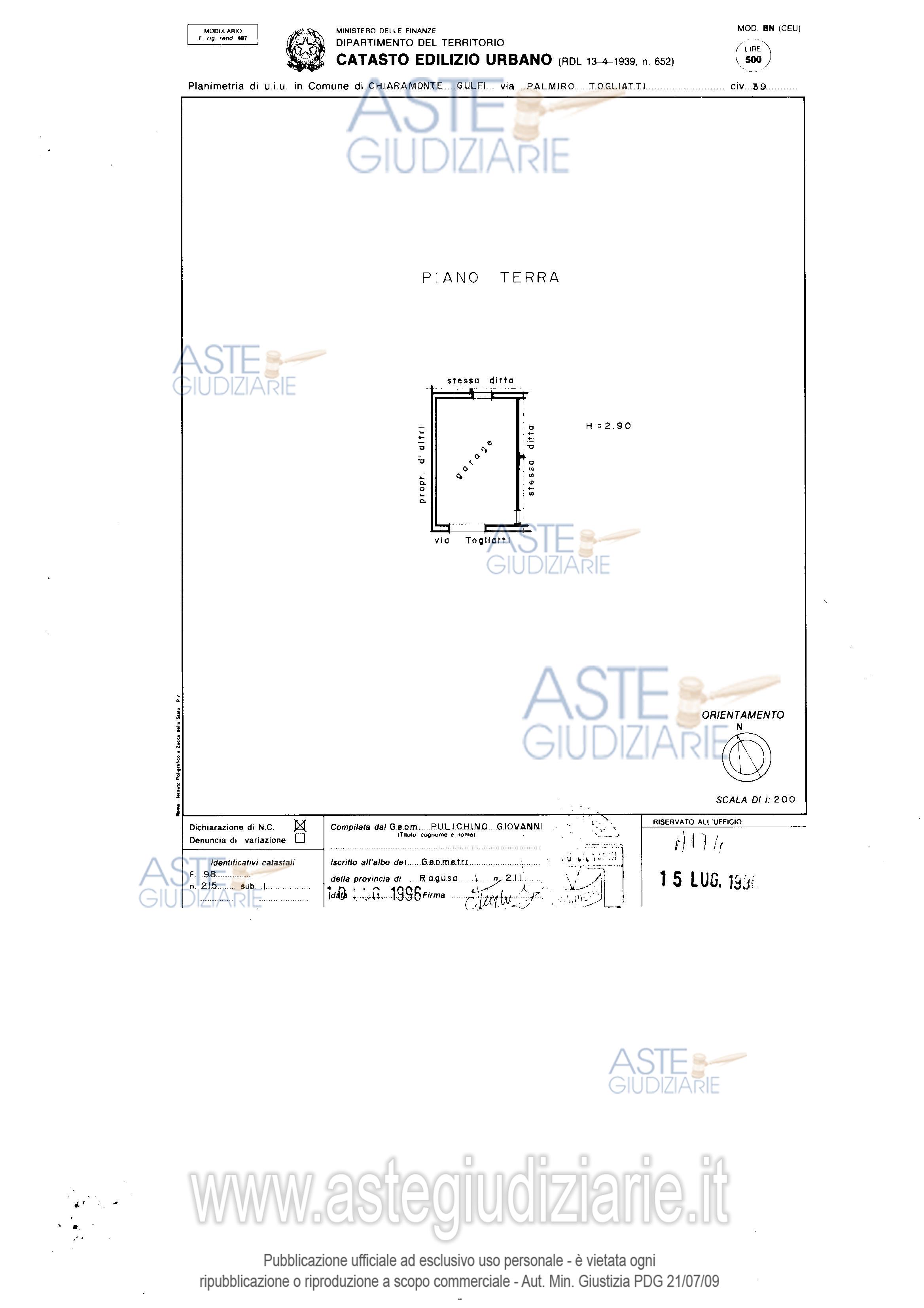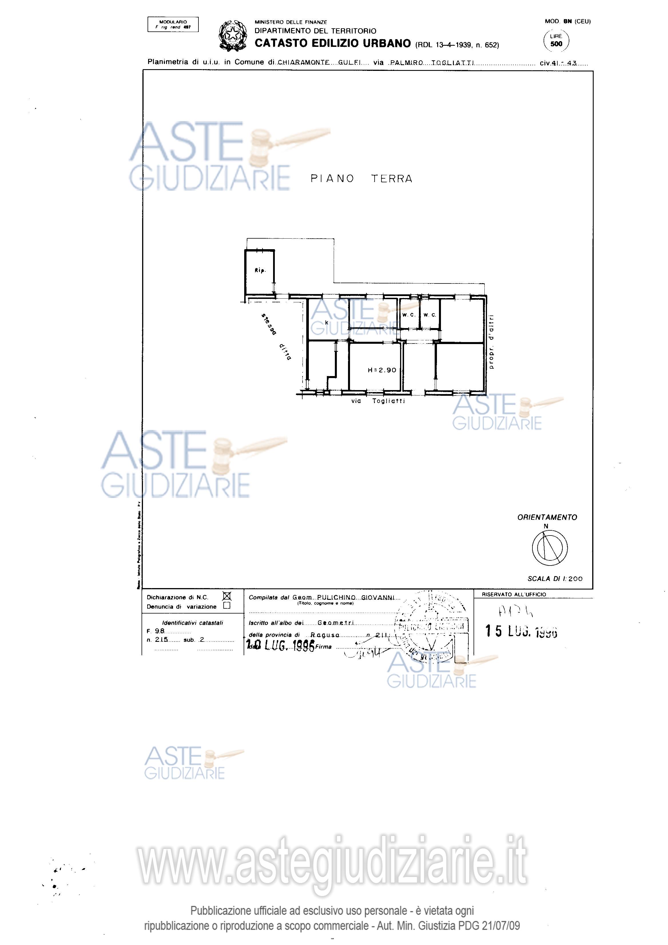 Vendita all'asta Senza incanto, con gara telematica sincrona mista - LOTTO 2: Appartamento per civile abitazione (150 mq) con annesso garage (49 mq) e veranda coperta (34 mq) sito in Chiaramonte Gulfi, via Palmiro Togliatti NCEU Foglio 98 Particella 215 Sub 1 Categoria C/6 Rendita € 140,89 classe 1; Sub 2 Categoria A/2 Rendita € 548,74 classe energetica “E”. Prezzo base € 22.560,00 (offerta minima € 16.920,00). Data vendita 27/03/2026 ore 15:30. Giudice Francesco Rio. Professionista delegato alla vendita Avv. Francesco Pannuzzo. Custode Giudiziario Avv. Francesco Pannuzzo - Email "studiolegalepannuzzo@hotmail.it"; Tel. 0932229003. Rif. Tribunale di Ragusa - Esecuzione immobiliare post legge 80 n. 426/2018