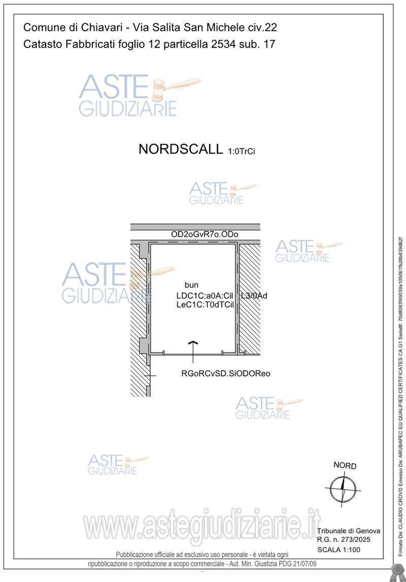 Vendita all'asta Senza incanto, con gara telematica sincrona mista - LOTTO UNICO: Appartamento posto al piano terra, in fase di costruzione e da ultimare essendo definito allo stato attuale solamente l'esterno della muratura e da completare totalmente la parte interna sia della muratura perimetrale che di tutti i localo interni come da progetto per essere reso abitabile; sono stati posti in opera e completati solamente i serramenti esterni. Annesso garage pertinenziale. Prezzo base € 107.855,00 (offerta minima € 80.892,00). Data vendita 21/05/2026 ore 13:30. Professionista delegato alla vendita Avv. Tiziana Alfisi - Email "tizianalfisi@libero.it"; Tel. 010590995. Custode Giudiziario Sovemo Srl - Email "visitegenova@sovemo.com"; Tel. 0105299253. Rif. Tribunale di Genova - Espropriazione immobiliare (cartabia) n. 273/2025
