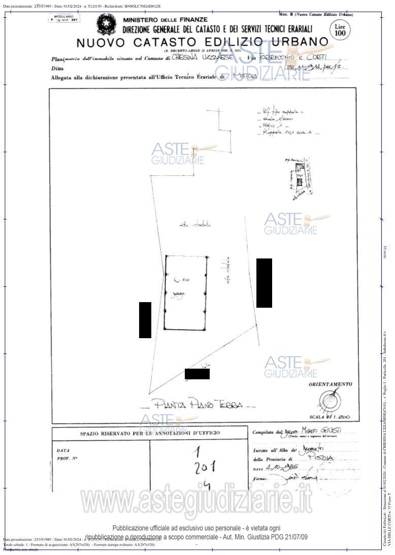 Vendita all'asta Senza incanto, con gara telematica asincrona - LOTTO 1: Diritto di piena proprietà sopra TERRATETTO ad uso civile abitazione, elevato su due pianifuori terra (terra e primo), corredato su due lati da ampio resede esclusivo di 358,09 mq, oltre apiccolissimo resede sul lato nord-ovest., con annesso piccolo fabbricato distaccato adibito a rimessae garage in proprietà esclusiva. Prezzo base € 217.000,00 (offerta minima € 162.750,00). Data inizio operazioni di vendita: 05/06/2026 ore 12:00. Giudice Dott. Sergio Garofalo. Professionista delegato alla vendita Avv. Matteo Bolognini - Email "matbolog@tiscalinet.it"; Tel. 0573364336. Custode Giudiziario Is.Ve.G. Istituto Vendite Giudiziarie S.R.L - Email "prenota.pt@isveg.it;pistoiaimmobiliari@isveg.it". Rif. Tribunale di Pistoia - Esecuzione immobiliare post legge 80 n. 229/2015