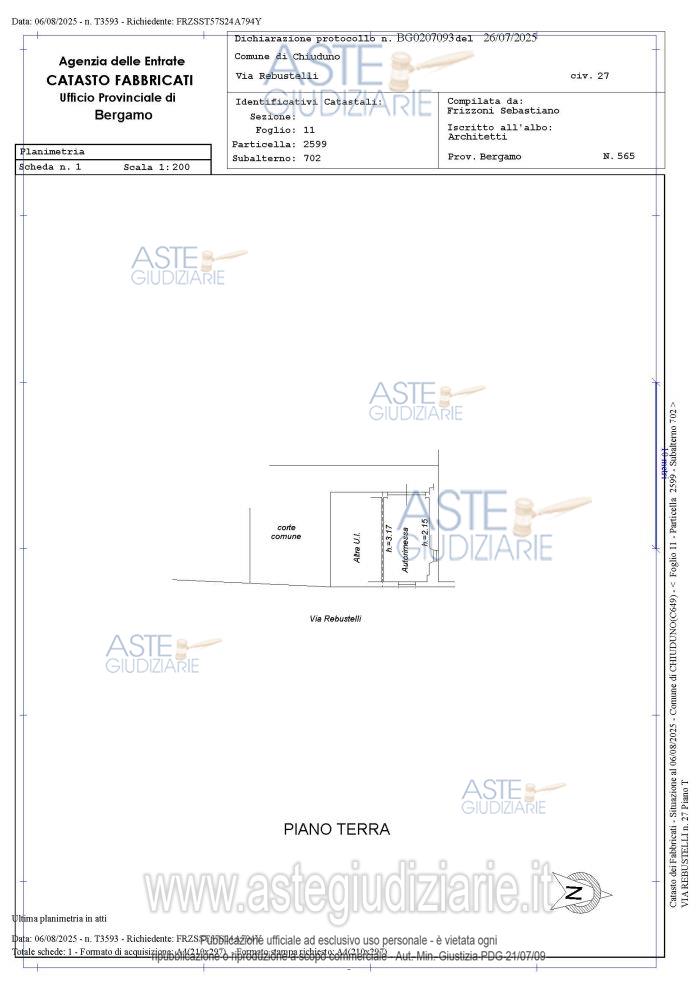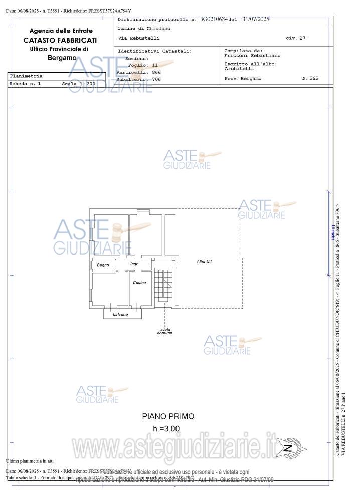 Vendita all'asta Senza incanto, con gara telematica asincrona - LOTTO UNICO: appartamento al piano primo composto da ingresso, cucina, bagno, due vani e balcone; soffitta al piano secondo; autorimessa al piano terra. Prezzo base € 56.511,75 (offerta minima € 42.383,81). Data inizio operazioni di vendita: 10/02/2026 ore 15:00. Professionista delegato alla vendita Avv. Simone Minola - Email "simoneminoa@virgilio.it"; Tel. 0350779384. Custode Giudiziario Avv. Simone Minola - Email "simoneminola@virgilio.it"; Tel. 0350779384. Rif. Tribunale di Bergamo - Espropriazione immobiliare (cartabia) n. 216/2025