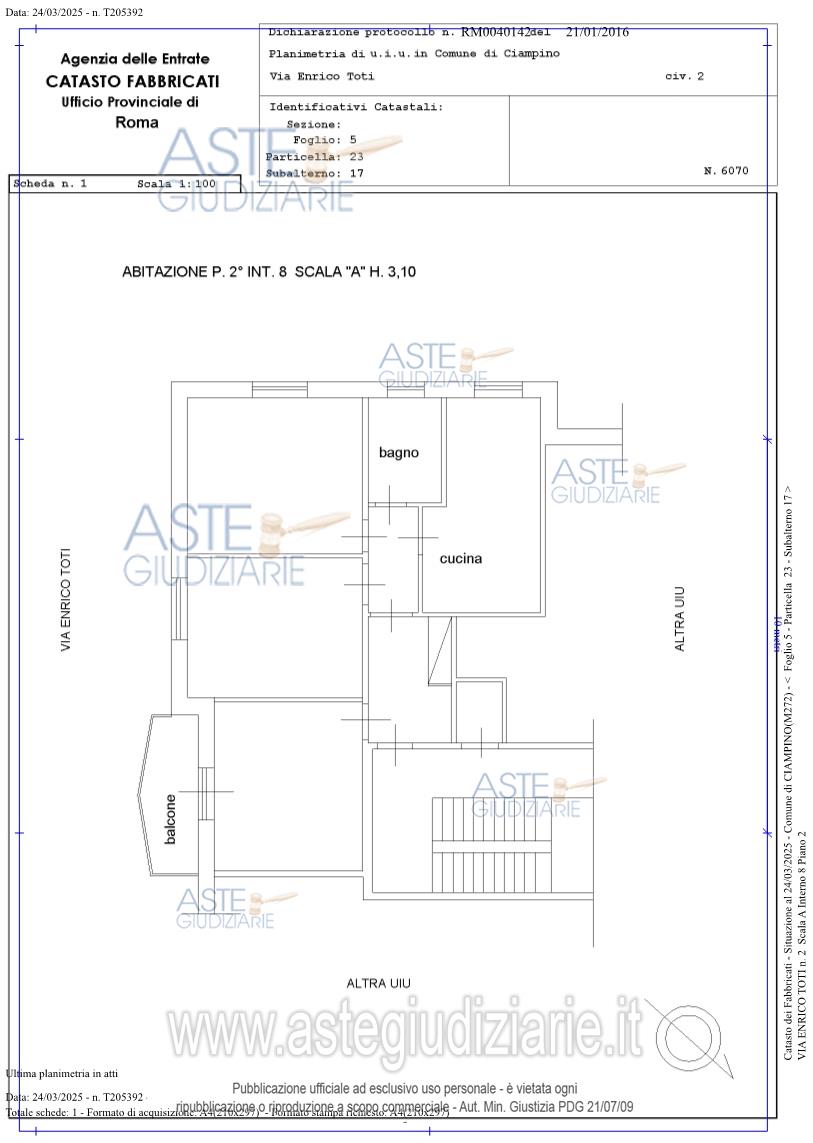 Vendita all'asta Senza incanto, con gara telematica asincrona - LOTTO UNICO: Appartamento al piano secondo. Al momento del sopralluogo il civico riscontrato è stato il4 in luogo del 2 riportato nel catasto. Prezzo base € 232.000,00 (offerta minima € 174.000,00). Data inizio operazioni di vendita: 27/11/2025 ore 10:00. Giudice Anna Luisa Di Serafino. Professionista delegato alla vendita Avv. Francesca Colaluca - Email "fra.colaluca@gmail.com"; Cell. 3204136711; Tel. 069781502. Custode Giudiziario Ivg Di Roma - Email "pvp@visiteivgroma.it". Rif. Tribunale di Velletri - Espropriazione immobiliare (cartabia) n. 422/2024