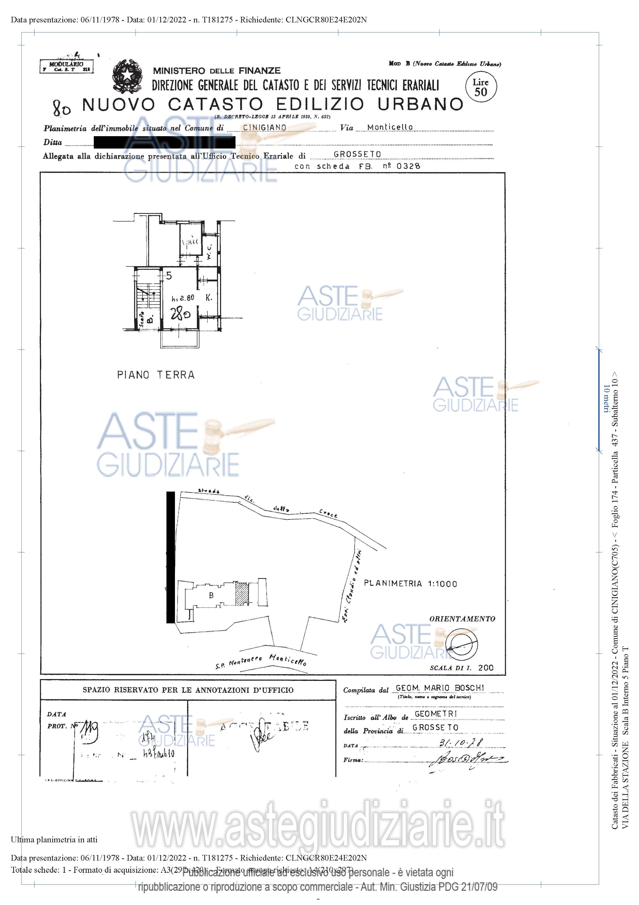 Vendita all'asta Senza incanto, con gara telematica asincrona - LOTTO 1: LOTTO UNICOIntera proprietà costituita da:Appartamento di civile abitazione con cantina sito a Monticello Amiata, in via della Stazione nel comune di Cinigiano (GR). Prezzo base € 22.426,00 (offerta minima € 16.820,00). Data inizio operazioni di vendita: 14/04/2026 ore 11:30. Giudice Dott. Cristina Nicolò. Professionista delegato alla vendita Dott. Ilaria Brogi - Email "ilaria.brogi@studioveninata.it"; Cell. 3385637299; Tel. 056422425. Custode Giudiziario Dott. Brogi Ilaria - Email "ilaria.brogi@studioveninata.it"; Cell. 3385637299; Tel. 056422425. Rif. Tribunale di Grosseto - Esecuzione immobiliare post legge 80 n. 151/2021