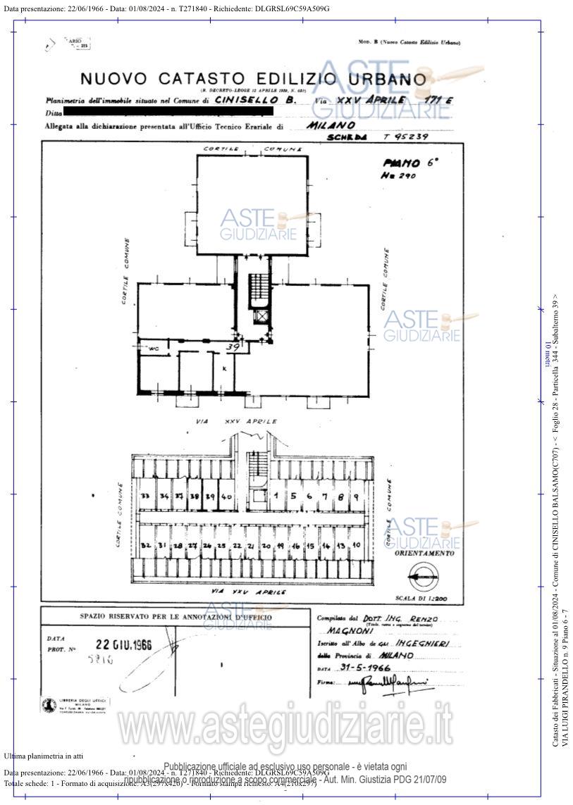 Vendita all'asta Senza incanto, con gara telematica sincrona - LOTTO UNICO: Appartamento piano 6 con ascensore mq 66,78 due locali con servizi oltre solaio al sottotetto piana proprieta'. Prezzo base € 124.000,00 (offerta minima € 93.000,00). Data vendita 19/11/2025 ore 11:00. Professionista delegato alla vendita Avv. Sabina Villa - Email "villa@rattinivilla.it"; Tel. 3381498680. Custode Giudiziario Avv. Sabina Villa - Email "villa@rattinivilla.it"; Tel. 3381498680. Rif. Tribunale di Monza - Espropriazione immobiliare (cartabia) n. 212/2024
