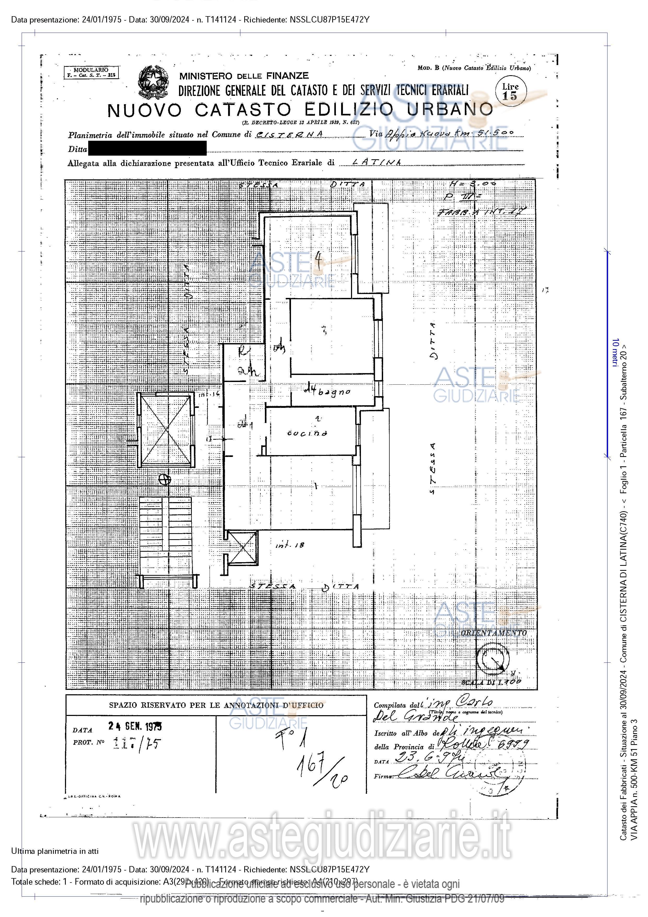 Vendita all'asta Senza incanto, con gara telematica asincrona - LOTTO 1: Vollständiges Eigentumsrecht an der Wohnung zur zivilen Nutzung im dritten Stock, bestehend aus: Eingang, Wohn- / Esszimmer mit Küchenzeile; Flur, zwei Schlafzimmer, zwei Bäder und Abstellraum, sowie Keller im Untergeschoss. . Prezzo base € 114.412,50 (offerta minima € 85.809,37). Data inizio operazioni di vendita: 14/05/2026 ore 10:00. Giudice Dott. Tiziana Tinessa. Custode Giudiziario Aste Giudiziarie Inlinea S.P.A. - Email "vendite@astegiudiziarie.it"; Tel. 0586 201480. Curatore Avv. Giuseppe Accapezzato. Rif. Tribunale di Latina - Fallimentare (nuovo rito) n. 56/2022