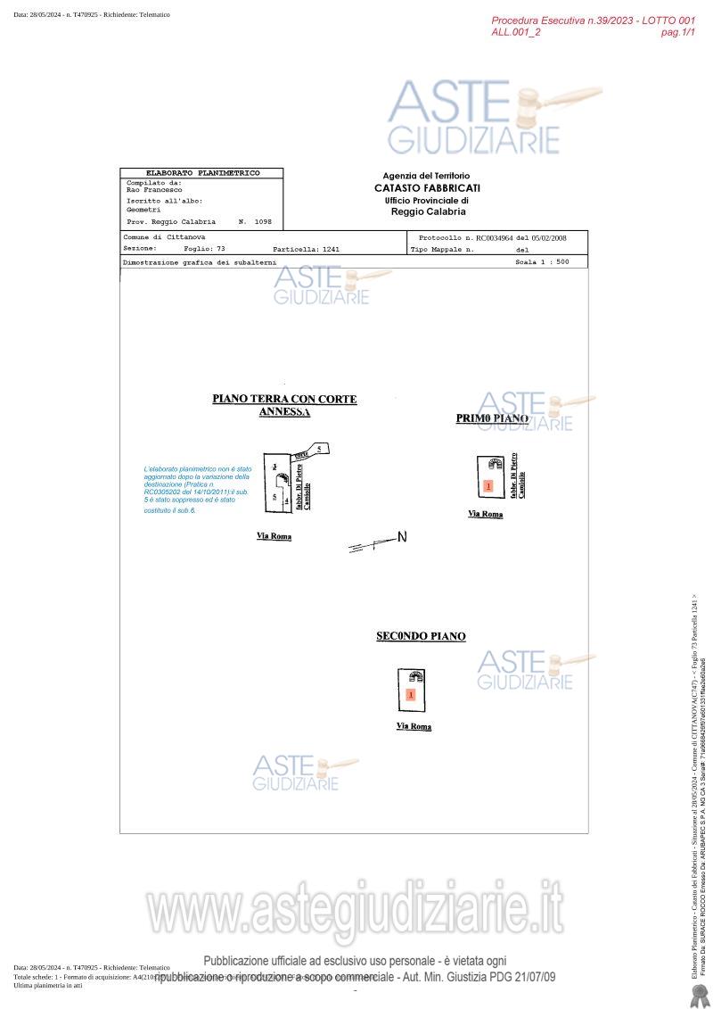 Vendita all'asta Senza incanto, con gara telematica asincrona - LOTTO 1: Diritto di proprietà per la quota di 8/12 di una unità immobiliare destinata ad abitazione ubicata ai piani primo (2° f.t.) e secondo (3° f.t.), con accesso dal piano terra attraverso bene comune non censibile con scala interna. Composta da due vani e due bagni. L’immobile fa parte di un fabbricato a tre p.f.t. Prezzo base € 24.350,00 (offerta minima € 18.262,50). Data inizio operazioni di vendita: 27/01/2026 ore 12:00. Giudice Dott. Marta Caineri. Professionista delegato alla vendita Avv. Rocco Mazza - Email "avv.roccomazza@gmail.com"; Tel. 3346835920. Custode Giudiziario Avv. Rocco Mazza - Email "avv.roccomazza@gmail.com"; Tel. 3346835920. Rif. Tribunale di Palmi - Esecuzione immobiliare post legge 80 n. 39/2023
