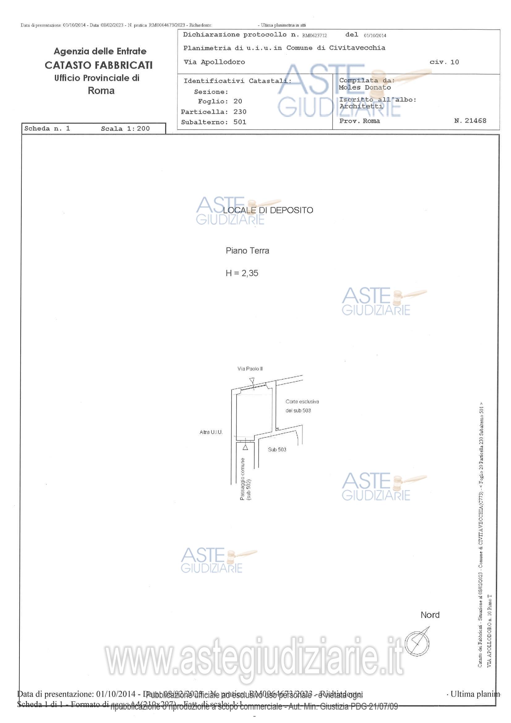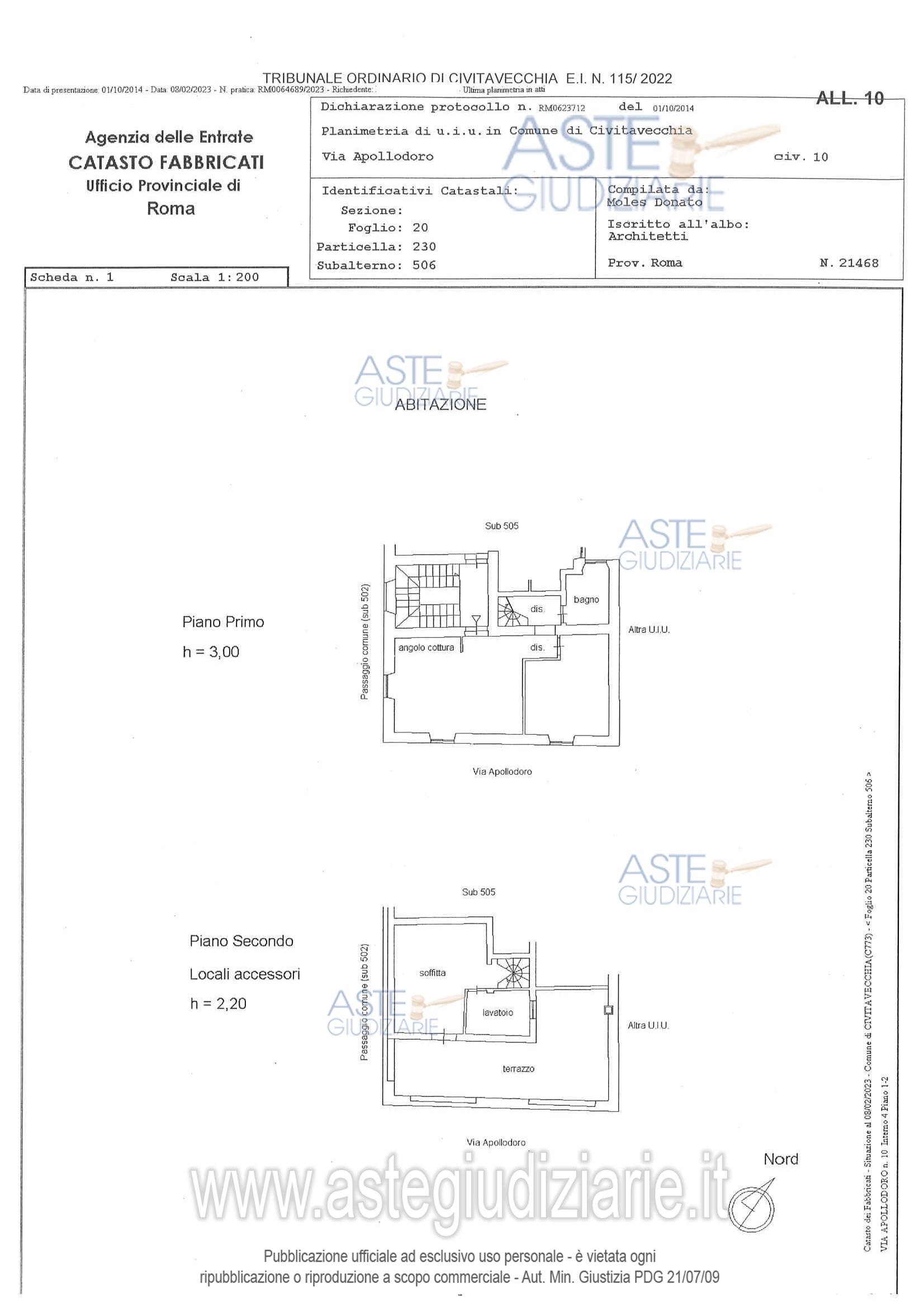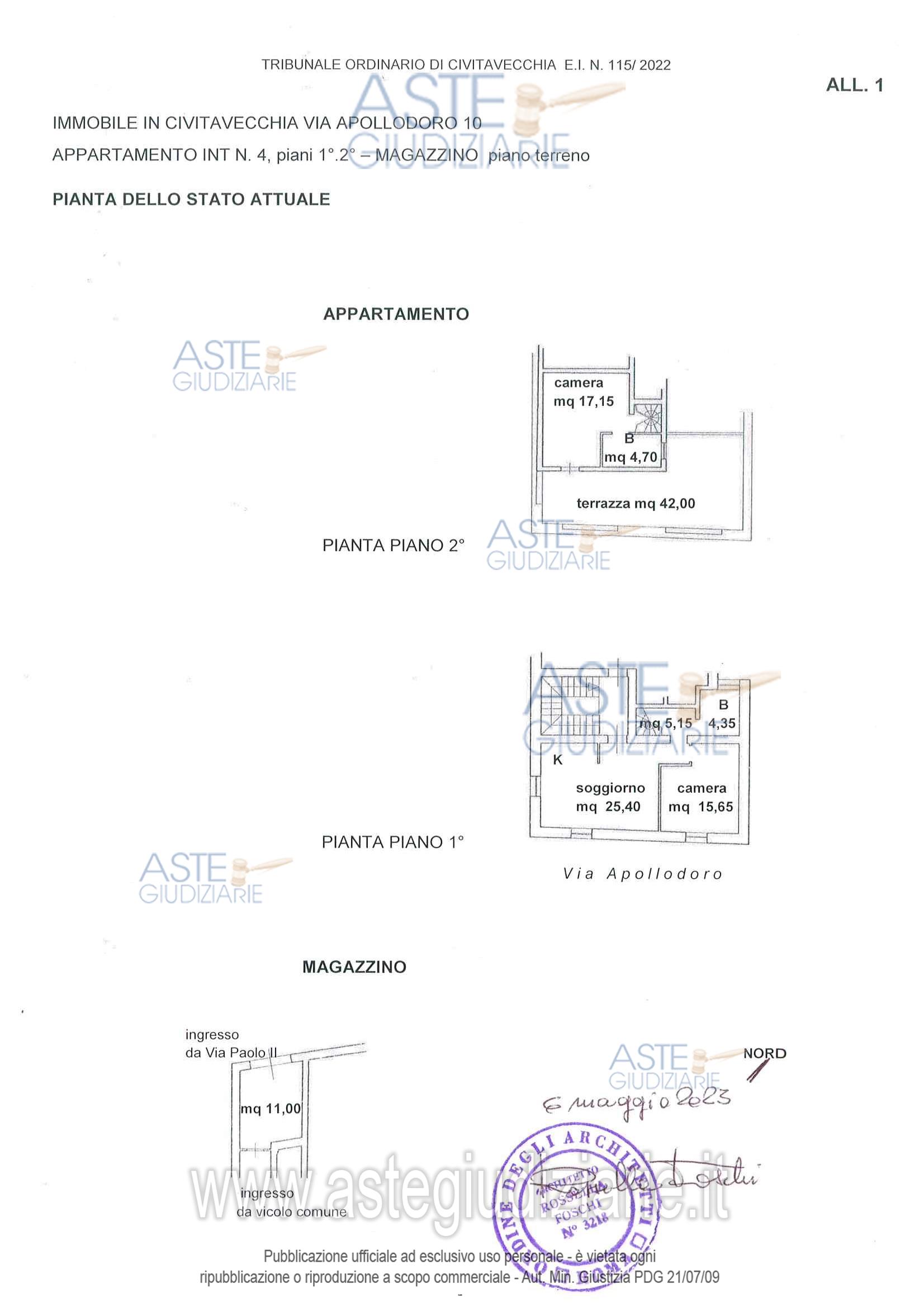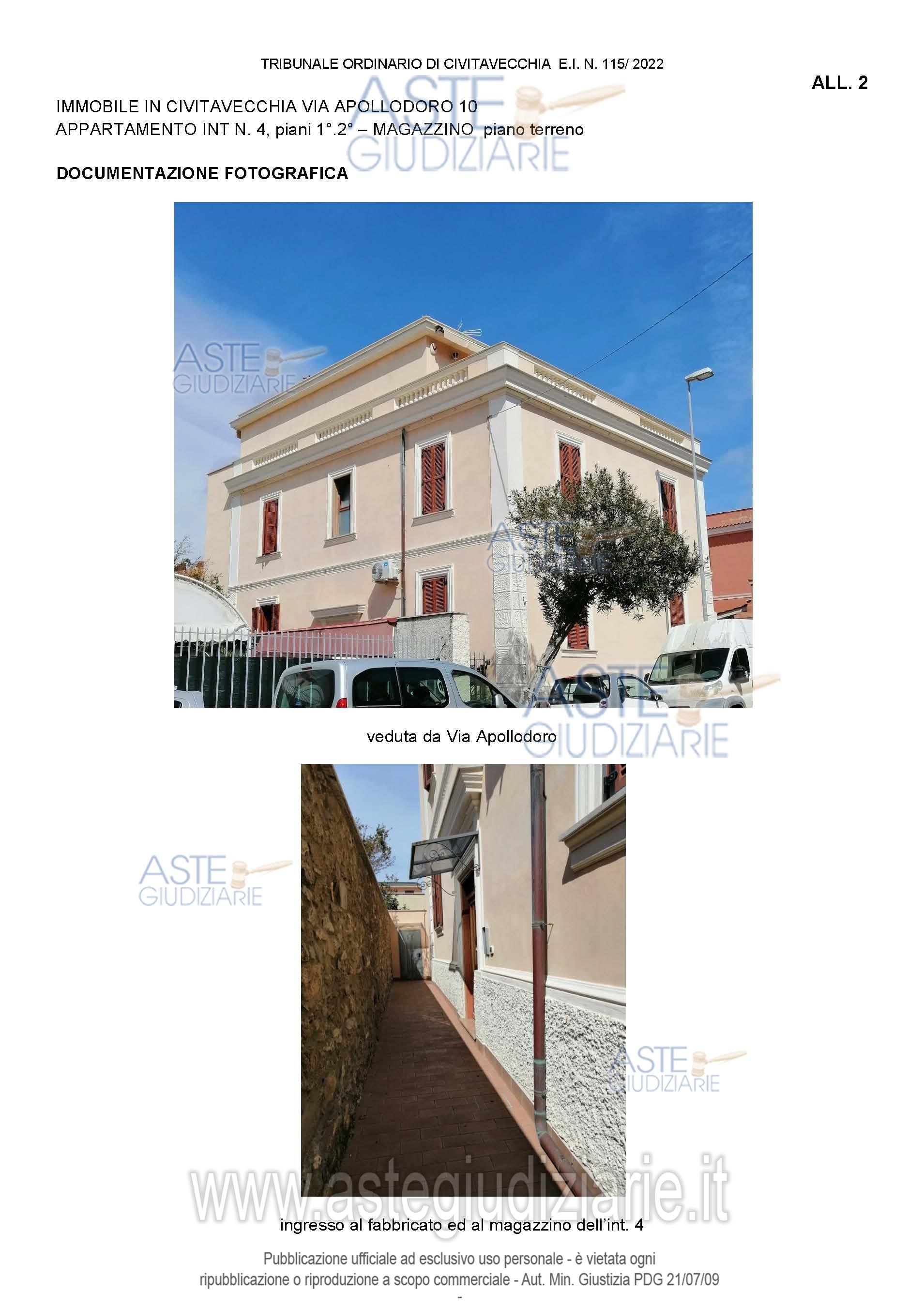 Vendita all'asta Senza incanto, con gara telematica asincrona - LOTTO 0: Appartamento nel Comune di Civitavecchia (RM), Via Apollodoro n. 10, int. 4, piani 1° e 2°, con locale magazzino di pertinenza al piano terra, Foglio 20 particella 230 sub 501, Zona cens 2, Categ. A2, Classe 3, Consist. Vani 4, Superficie catastale Totale: mq 94. escluse aree scoperte mq 85, Rendita € 506,13; il magazzino al Foglio 20 particella 230, sub 506, Zona cens 2, Categ. C2, Classe 3, Consist. mq 11, Superficie catastale Totale: mq 16, Rendita € 52,27. Prezzo base € 135.000,00 (offerta minima € 101.250,00). Data inizio operazioni di vendita: 26/11/2025 ore 15:30. Giudice Dott. Stefano Palamaccio. Professionista delegato alla vendita Avv. Francesco Serpa - Email "francescoserpa76@gmail.com"; Tel. 076623698. Custode Giudiziario Avv. Francesco Serpa - Email "francescoserpa76@gmail.com"; Tel. 076623698. Rif. Tribunale di Civitavecchia - Esecuzione immobiliare post legge 80 n. 115/2022