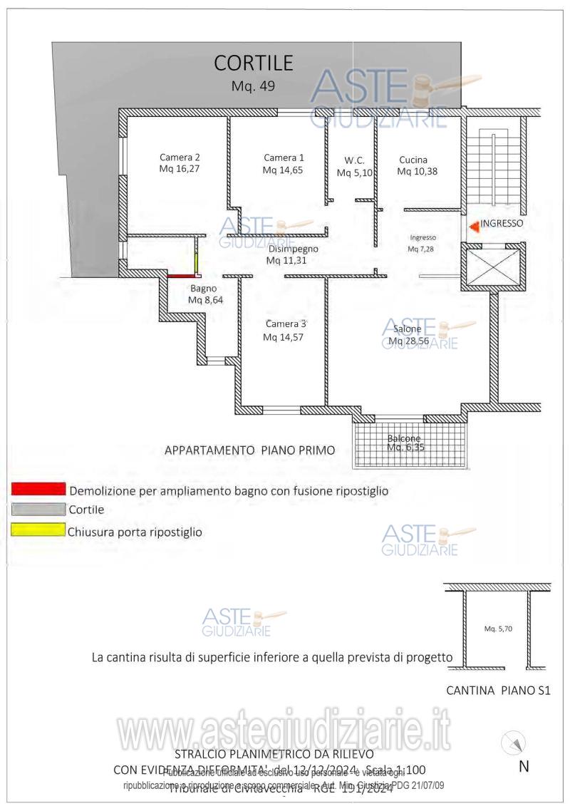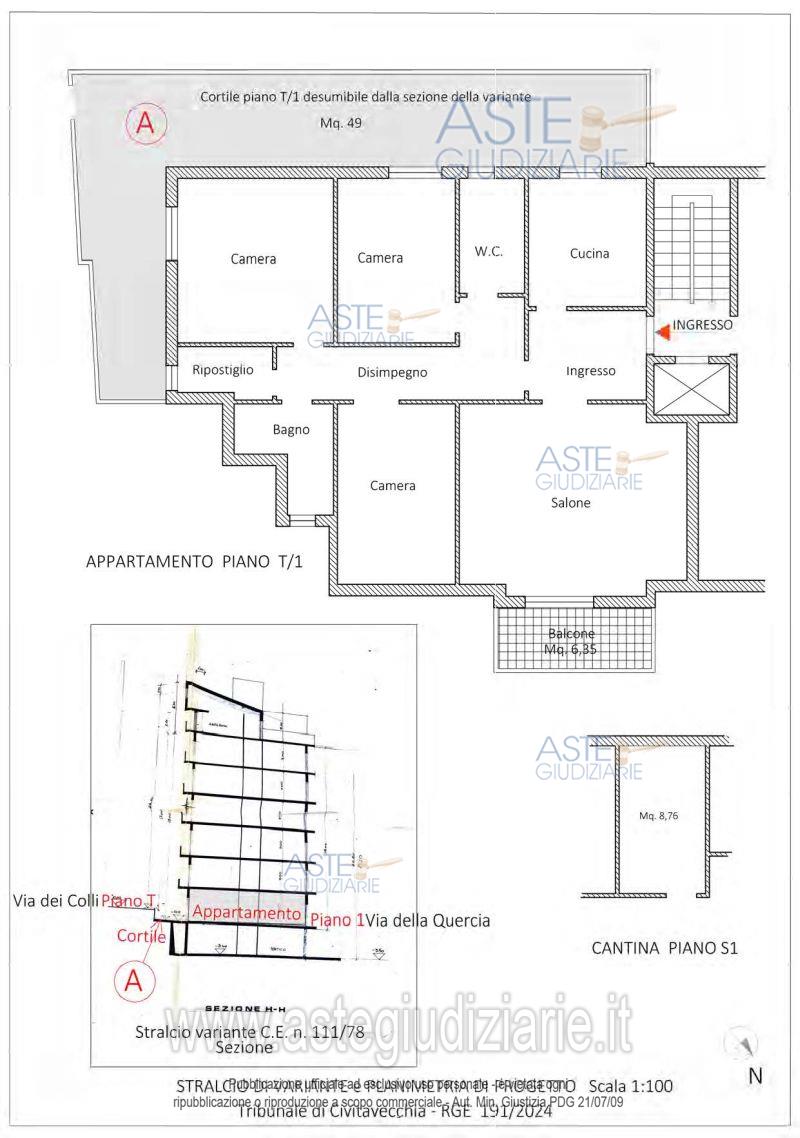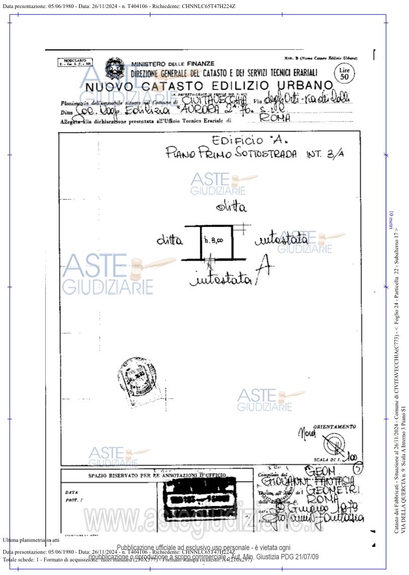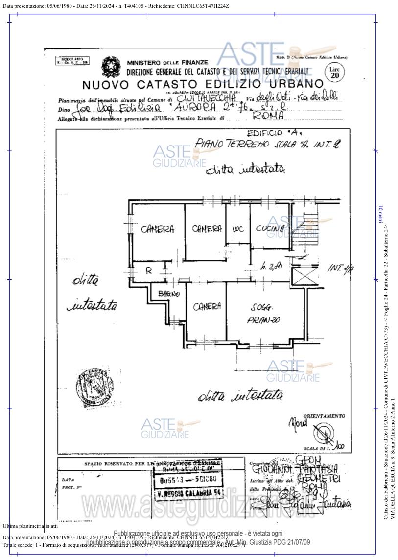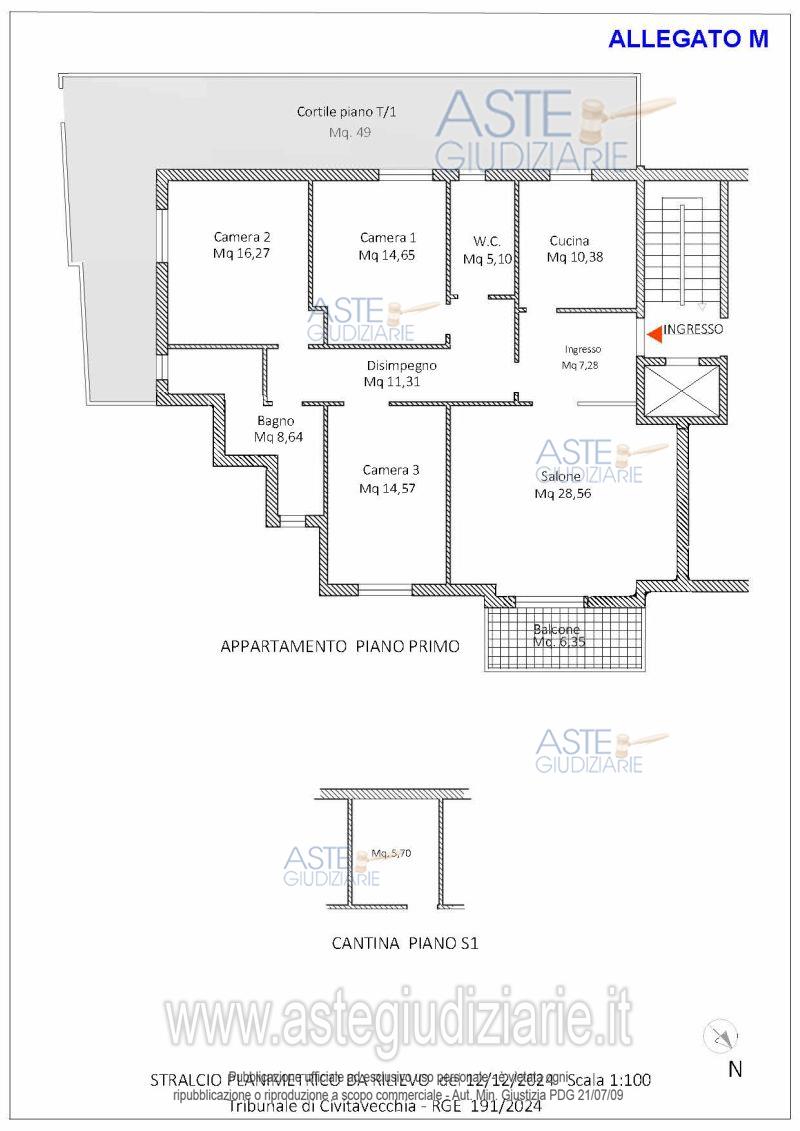 Vendita all'asta Senza incanto, con gara telematica asincrona - LOTTO 1: Appartamento al piano terra distribuito su unico livello composto da ingresso, ampio salone, cucina, disimpegno che conduce alla zona notte composta da tre camere da letto, wc e bagno. Piccola cantina al piano terra. Prezzo base € 183.000,00 (offerta minima € 137.250,00). Data inizio operazioni di vendita: 13/03/2026 ore 15:00. Giudice Stefano Palmaccio. Professionista delegato alla vendita Avv. Pasquale Giampaglia. Custode Giudiziario Avv. Pasquale Giampaglia - Email "studiolegale.giampaglia@gmail.com". Rif. Tribunale di Civitavecchia - Espropriazione immobiliare (cartabia) n. 191/2024