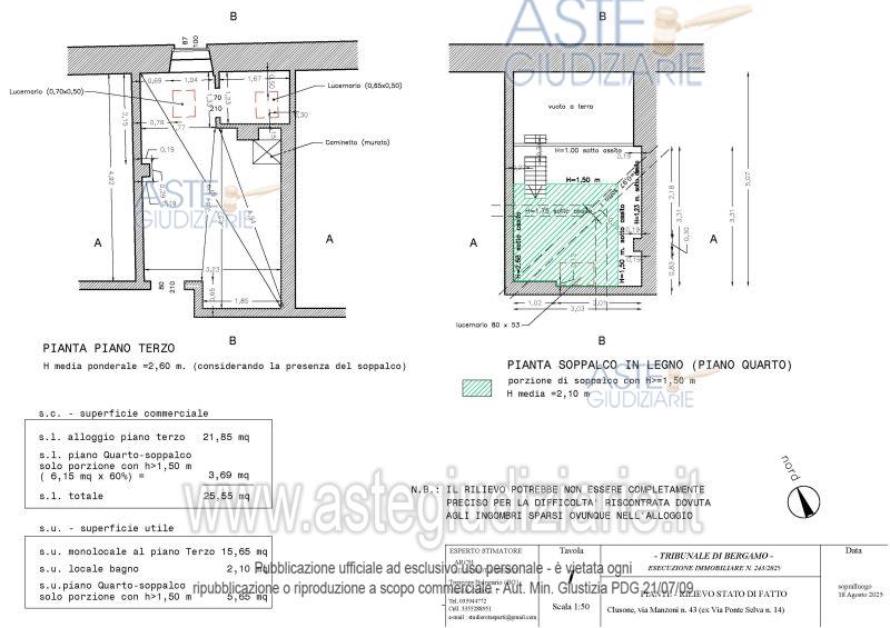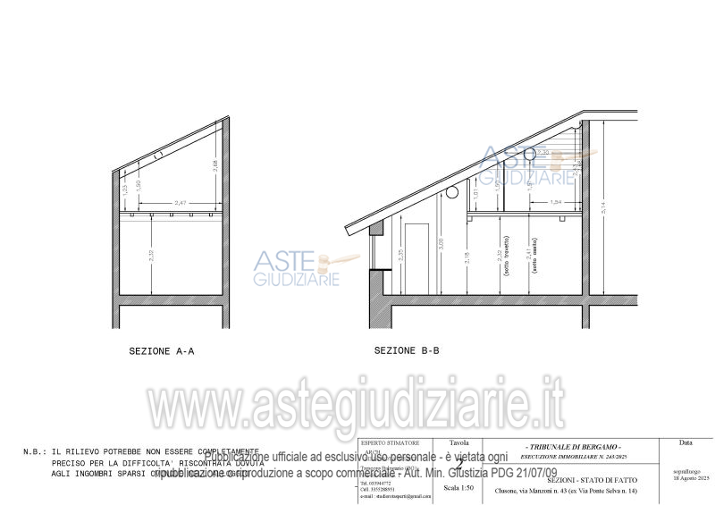 Vendita all'asta Senza incanto, con gara telematica asincrona - LOTTO UNICO: ABITAZIONE DI TIPO ECONOMICO (A3) - MONOLOCALE AL PIANO TERZO CON SOPPALCO E POSTO AUTO, FRAZIONE PONTE DELLA SELVA, CONSISTENZA 1,5 VANI, SUPERFICIE 23 MQ. Prezzo base € 21.152,00 (offerta minima € 15.864,00). Data inizio operazioni di vendita: 25/03/2026 ore 12:00. Professionista delegato alla vendita Avv. Silverio Vitali - Email "info@vitalidamore.com"; Tel. 035226929. Custode Giudiziario Avv. Silverio Vitali - Email "info@vitalidamore.com"; Tel. 035226929. Rif. Tribunale di Bergamo - Espropriazione immobiliare (cartabia) n. 243/2025