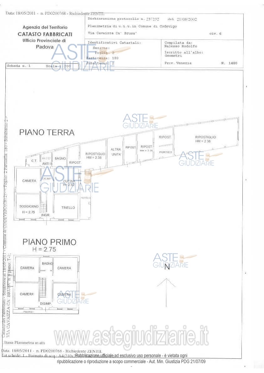 Vendita all'asta Senza incanto, con gara telematica sincrona - LOTTO 2: Lotto 2 - piena proprietà di fabbricato residenziale, sito in Comune di Codevigo (PD), località Rosara, via Cavaizza n. 6, già via Argine Sinistro Brenta e precisamente abitazione ai piani terra e primo con annesso garage per una superficie commerciale complessiva di mq. 296, oltre all'area coperta e scoperta esclusiva di catastali mq. 1.340. Prezzo base € 101.000,00 (offerta minima € 75.750,00). Data vendita 03/03/2026 ore 15:00. Giudice Rossi. Professionista delegato alla vendita Not. Roberto Franco - Email "aste@apepnotai.it"; Tel. 049651228. Rif. Tribunale di Padova - Contenzioso civile n. 7219/2012