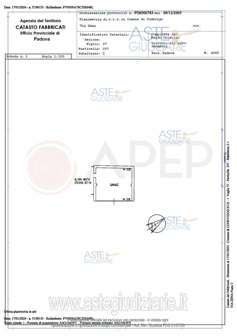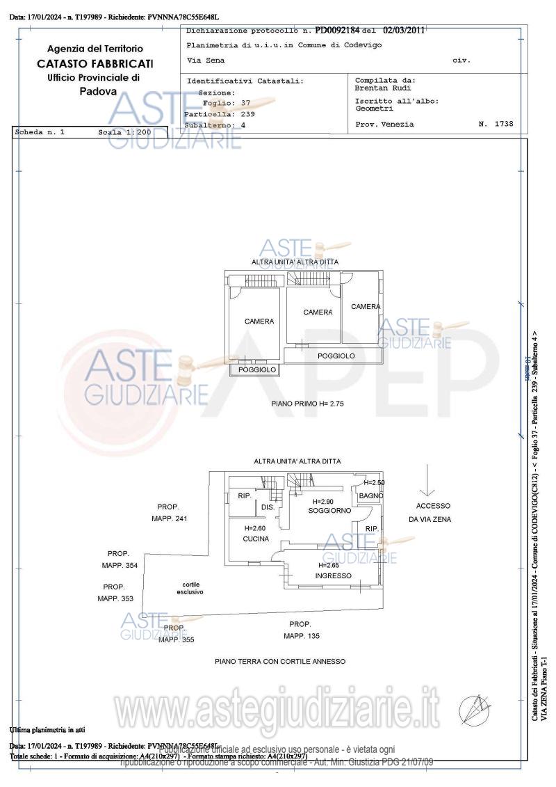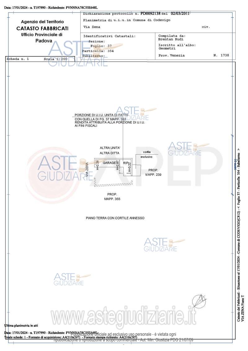 Vendita all'asta Senza incanto, con gara telematica sincrona - LOTTO 1: Lotto 1- piena proprietà di abitazione, in Comune di Codevigo (PD), località Zena Conche, via Zena n.23, con area coperta e scoperta di mq. 136 e per una superficie commerciale di mq. 170; terreno di mq. 500 con soprastanti edificati tutti da demolire; quota indivisa di 1/2 di porzione di garage, di fatto non nella disponibilità dell'attuale ditta proprietaria; quota indivisa di 8/80 della stradina campestre di accesso di mq. 728; quota di 4/27 di altra stradina di accesso di mq. 220. Occupato senza titolo. Prezzo base € 70.000,00 (offerta minima € 52.500,00). Data vendita 26/03/2026 ore 10:00. Giudice Segalina. Professionista delegato alla vendita Not. Emanuela Lo Buono - Email "aste@apepnotai.it"; Tel. 049651228. Custode Giudiziario Apep - Email "visita@apepnotai.it"; Tel. 049651228. Rif. Tribunale di Padova - Espropriazione immobiliare (cartabia) n. 345/2023