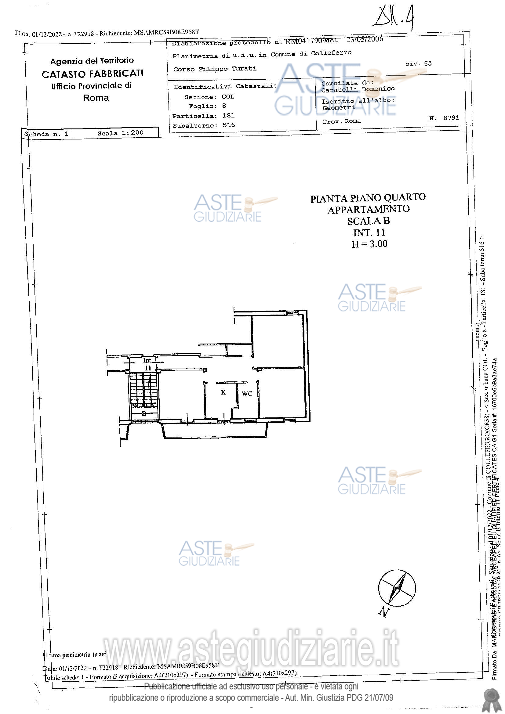 Vendita all'asta Senza incanto, con gara telematica asincrona - LOTTO 1: Appartamento posto al piano quarto. Prezzo base € 75.000,00 (offerta minima € 56.250,00). Data inizio operazioni di vendita: 13/05/2026 ore 09:00. Professionista delegato alla vendita Avv. Riccardo Guidaldi. Custode Giudiziario Avv. Riccardo Guidaldi - Email "rguidaldi@tiscali.it"; Tel. 069630978. Rif. Tribunale di Velletri - Esecuzione immobiliare post legge 80 n. 77/2022